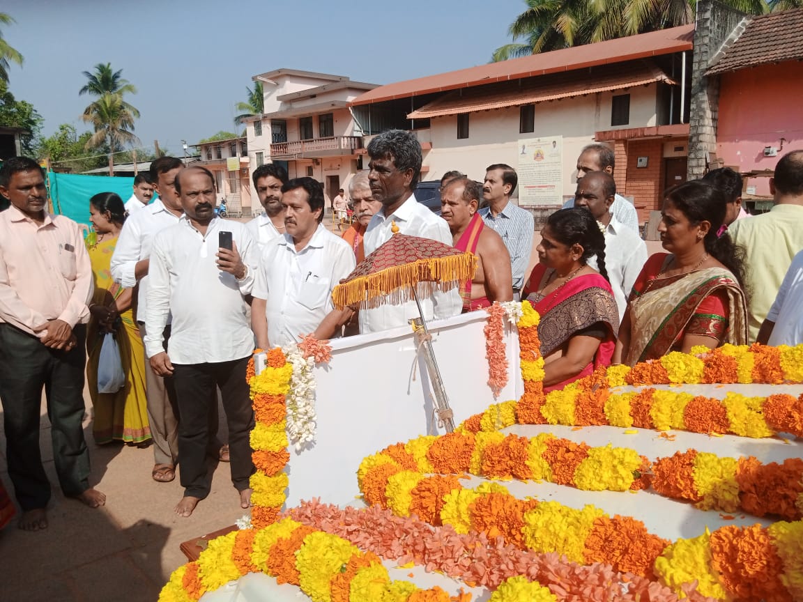 ಉಡುಪಿ, ಫೆ.14: ಸರಕಾರದ ಯೋಜನೆಯಾದ ಸಪ್ತಪದಿ ಉಚಿತ ಸಾಮೂಹಿಕ ವಿವಾಹದ ಕುರಿತು ವ್ಯಾಪಕ ಅರಿವು ಮೂಡಿಸಲು ಸಂಚರಿಸುವ ಸಪ್ತಪಧಿ ರಥಕ್ಕೆ ರಾಜ್ಯ ಮುಜರಾಯಿ ಮೀನುಗಾರಿಕೆ ಹಾಗೂ ಬಂದರು ಮತ್ತು ಒಳನಾಡು ಜಲಸಾರಿಗೆ ಸಚಿವ ಕೋಟ ಶ್ರೀನಿವಾಸ ಪೂಜಾರಿ ಶುಕ್ರವಾರ ಉಡುಪಿ ಕಡಿಯಾಳಿಯ ಶ್ರೀಮಹಿಷಮರ್ಧಿನಿ ದೇವಸ್ಥಾನ ಮುಂಭಾಗದಲ್ಲಿ ಚಾಲನೆ ನೀಡಿದರು.