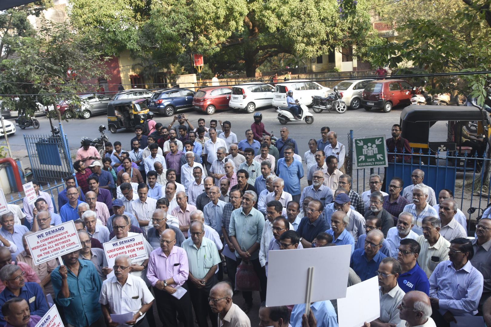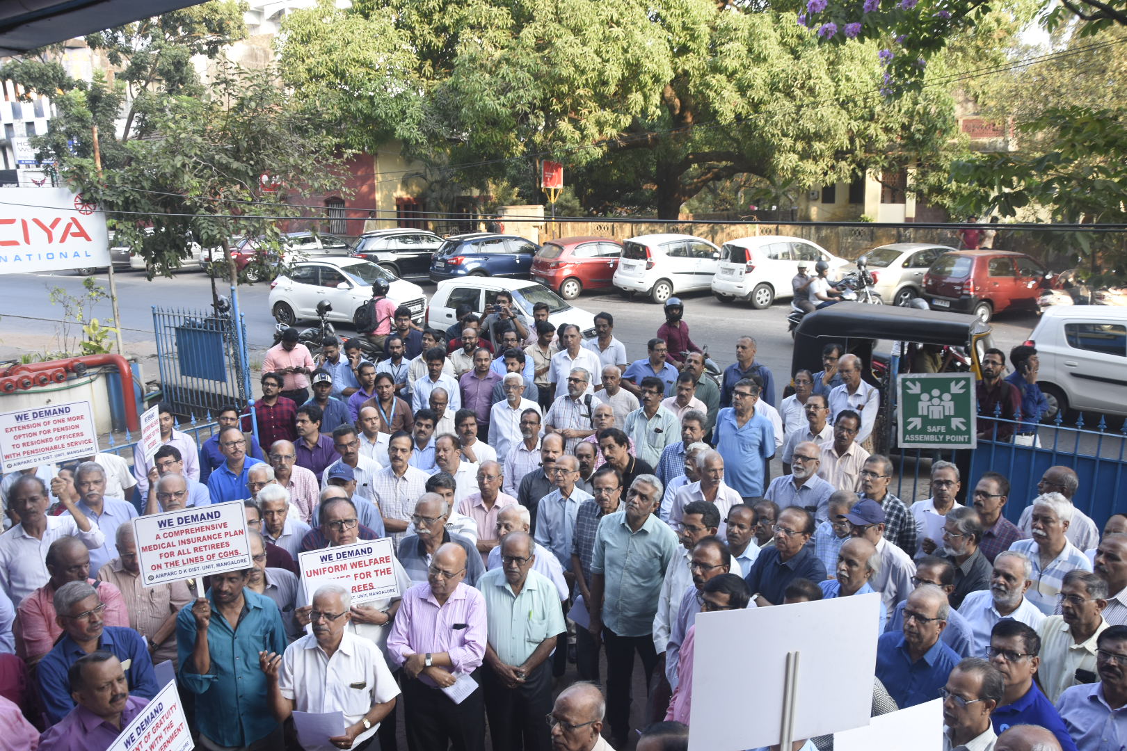 ಮಂಗಳೂರು: ವಿವಿಧ ಬೇಡಿಕೆಗೆ ಆಗ್ರಹಿಸಿ ನಿವೃತ್ತ ಬ್ಯಾಂಕ್ ನೌಕರರ ಧರಣಿ