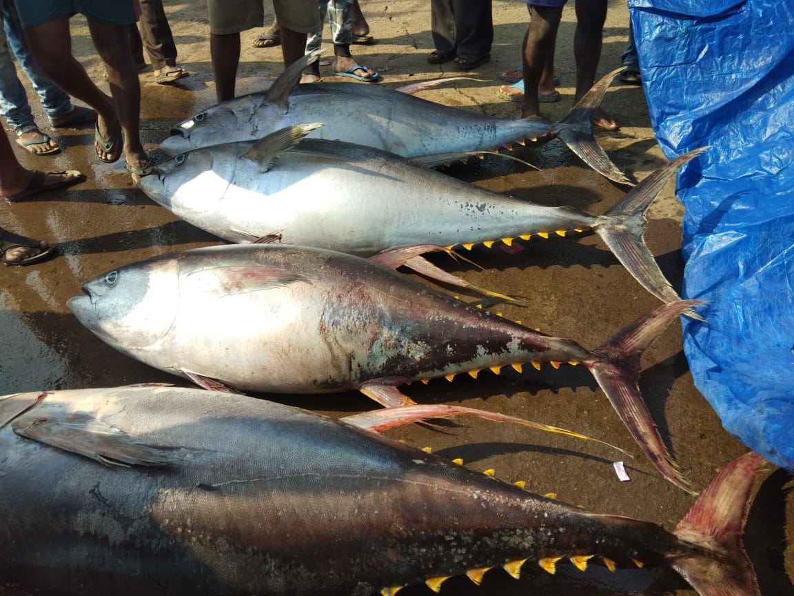 ಕಾರವಾರ: ಬೈತಖೋಲ್ ಬಂದರಿನಲ್ಲಿ ಬಲೆಗೆ ಬಿದ್ದ ಬೃಹತ್ ಮೀನುಗಳು