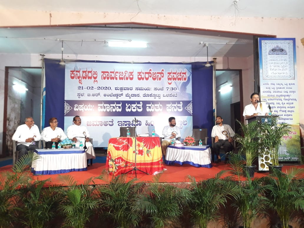 ಅವರು ಜಮಾಅತೆ ಇಸ್ಲಾಮಿ ಹಿಂದ್ ಇದರ ಆಶ್ರಯದಲ್ಲಿ ತೊಕ್ಕೊಟ್ಟುವಿನಲ್ಲಿ ನಡೆದ ಕನ್ನಡದಲ್ಲಿ ಸಾರ್ವಜನಿಕ ಕುರ್ ಆನ್ ಪ್ರವಚನ ಕಾರ್ಯಕ್ರಮದಲ್ಲಿ ಮುಖ್ಯ ಅತಿಥಿಯಾಗಿ ಭಾಗವಹಿಸಿ ಮಾತನಾಡಿದರು.