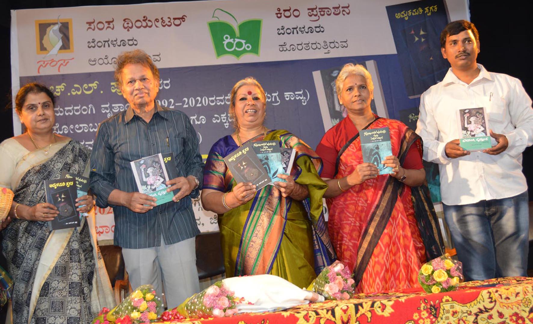 ರವಿವಾರ ಸಂಸ ಥಿಯೇಟರ್ ಹಾಗೂ ಕಿರಂ ಪ್ರಕಾಶನ ನಗರದ ನಯನ ಸಭಾಂಗಣದಲ್ಲಿ ಆಯೋಜಿಸಿದ್ದ ಹಿರಿಯ ಕವಯತ್ರಿ ಎಚ್.ಎಲ್.ಪುಷ್ಪರವರ ಮದರಂಗಿ ವೃತ್ತಾಂತ, ಸೋಲಾಬರಸ್ ಹುಡುಗರು ಹಾಗೂ ಎಕ್ಕದ ಬೀಜ ಹಾಗೂ ಅಮೃತಮತಿ ಸ್ವಗತ ಕೃತಿಗಳನ್ನು ಬಿಡುಗಡೆಗೊಳಿಸಿ ಅವರು ಮಾತನಾಡಿದರು.