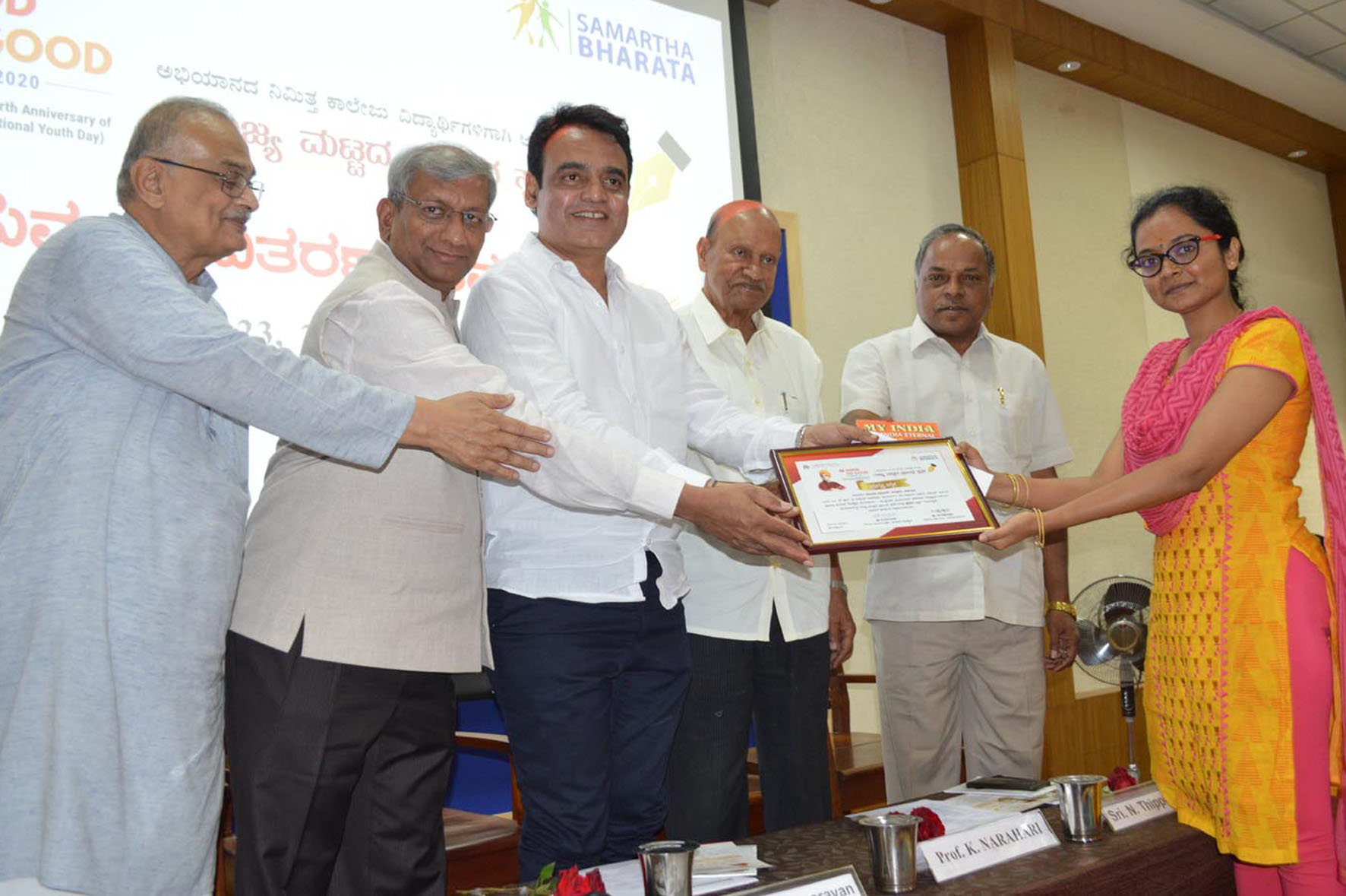 ರವಿವಾರ ನಗರದಲ್ಲಿ ಮಿಥಿಕ್ ಸೊಸೈಟಿ ಹಾಗೂ ಸಮರ್ಥ ಭಾರತ ವತಿಯಿಂದ ವಿವೇಕಾನಂದ ಜಯಂತಿ ಪ್ರಯುಕ್ತ ಹಮ್ಮಿಕೊಳ್ಳಲಾಗಿದ್ದ ‘ಬಿ ಗುಡ್ ಡು ಗುಡ್’ ಪ್ರಬಂಧ ಸ್ಪರ್ಧೆ ವಿಜೇತರಾದವರಿಗೆ ಬಹುಮಾನ ವಿತರಿಸಿ ಅವರು ಮಾತನಾಡಿದರು.