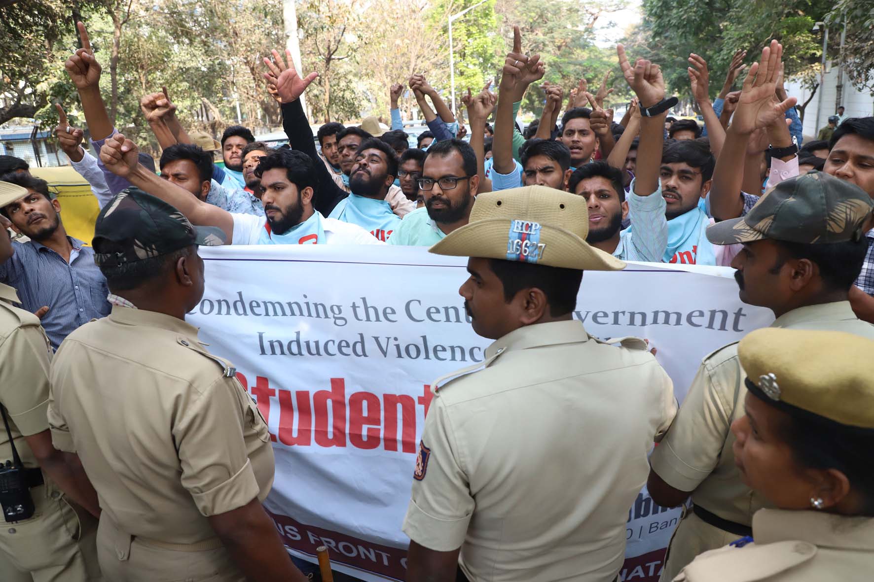 ಗುರುವಾರ ಕ್ಯಾಂಪಸ್ ಫ್ರಂಟ್ ಆಫ್ ಇಂಡಿಯಾ ವಿದ್ಯಾರ್ಥಿ ಸಂಘಟನೆಯ ಕಾರ್ಯಕರ್ತರು ದಿಲ್ಲಿಯಲ್ಲಿ ನಡೆಯುತ್ತಿರುವ ಹಿಂಸಾಚಾರವನ್ನು ತೀವ್ರವಾಗಿ ಖಂಡಿಸಿ, ಕೇಂದ್ರ ಸರಕಾರ ಹಾಗೂ ದಿಲ್ಲಿ ಪೊಲೀಸರ ವಿರುದ್ಧ ಘೋಷಣೆ ಕೂಗುತ್ತಾ ರಾಜಭವನದ ಬಳಿ ರಸ್ತೆಯಲ್ಲೇ ಕುಳಿತು ಪ್ರತಿಭಟನೆ ನಡೆಸಿದರು.