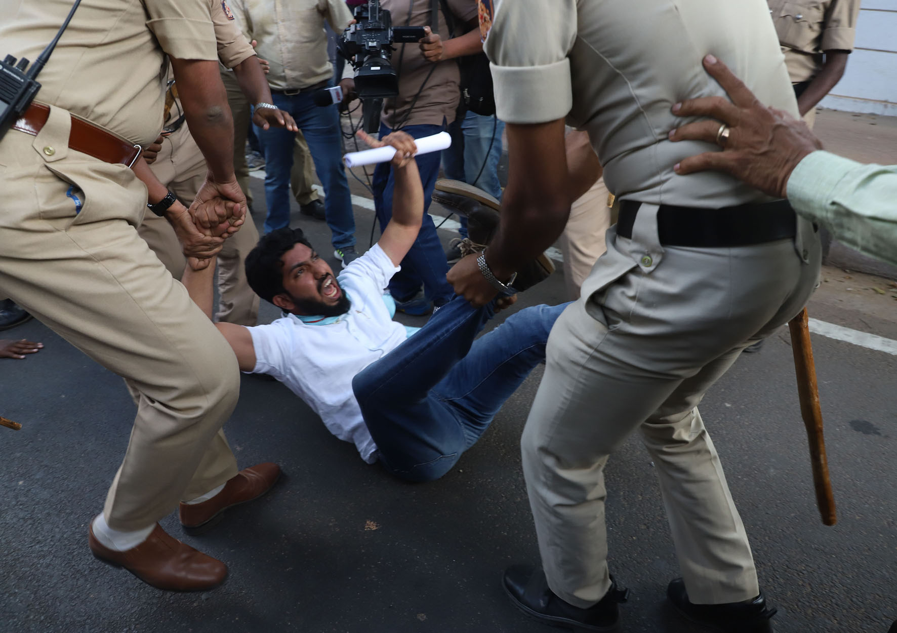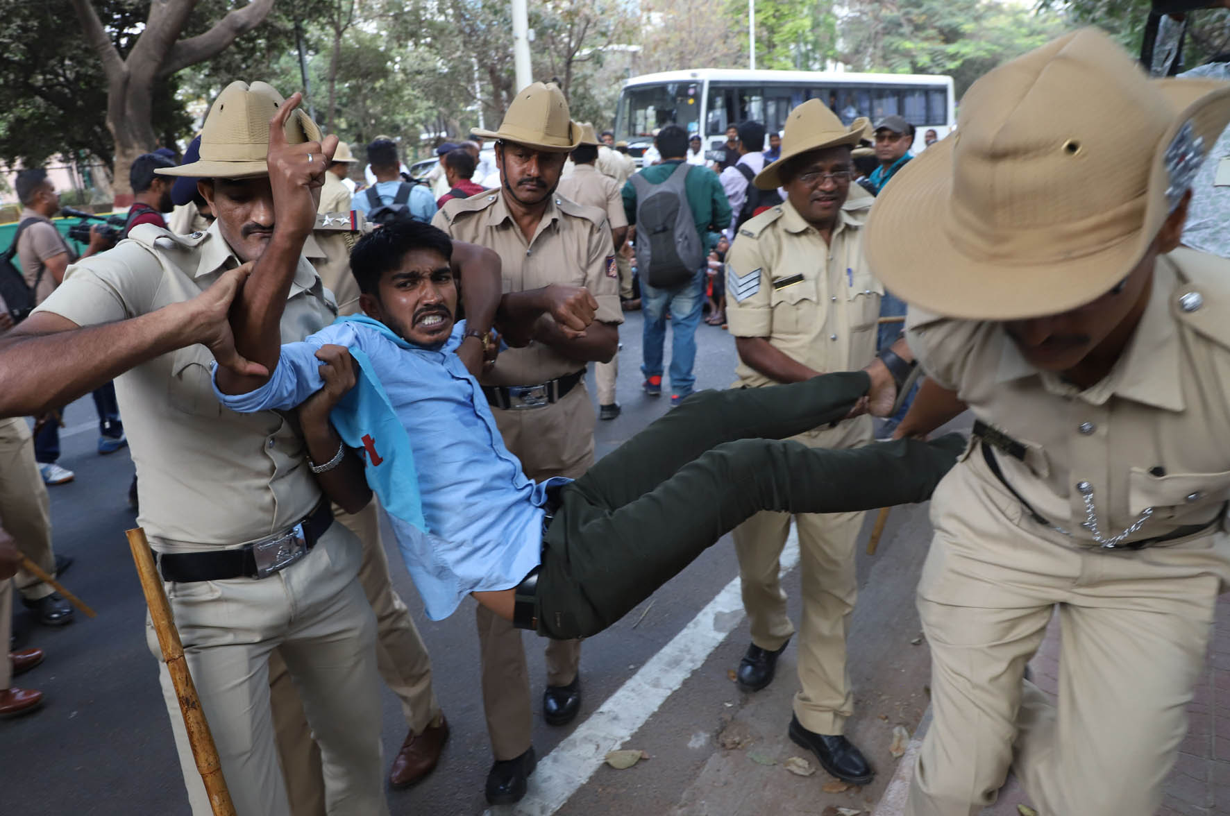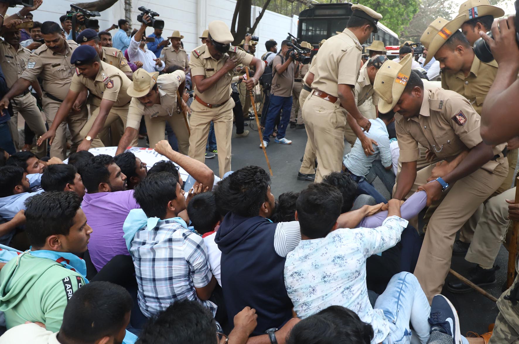 ವಿದ್ಯಾರ್ಥಿಗಳು ಪ್ರತಿಭಟನೆಗೆ ಪೊಲೀಸರಿಂದ ಅನುಮತಿ ಪಡೆದಿರಲಿಲ್ಲ. ಏಕಾಏಕಿ ರಾಜಭವನದ ಬಳಿ ಜಮಾಯಿಸಿ ಪ್ರತಿಭಟನೆ ನಡೆಸಿದರು. ಬಳಿಕ ರಾಜಭವನಕ್ಕೂ ಮುತ್ತಿಗೆ ಹಾಕಲು ಮುಂದಾದರು. ಈ ವೇಳೆ ಪೊಲೀಸರು ಪ್ರತಿಭಟನಾನಿರತರನ್ನು ವಶಕ್ಕೆ ಪಡೆದಿದ್ದಾರೆ.