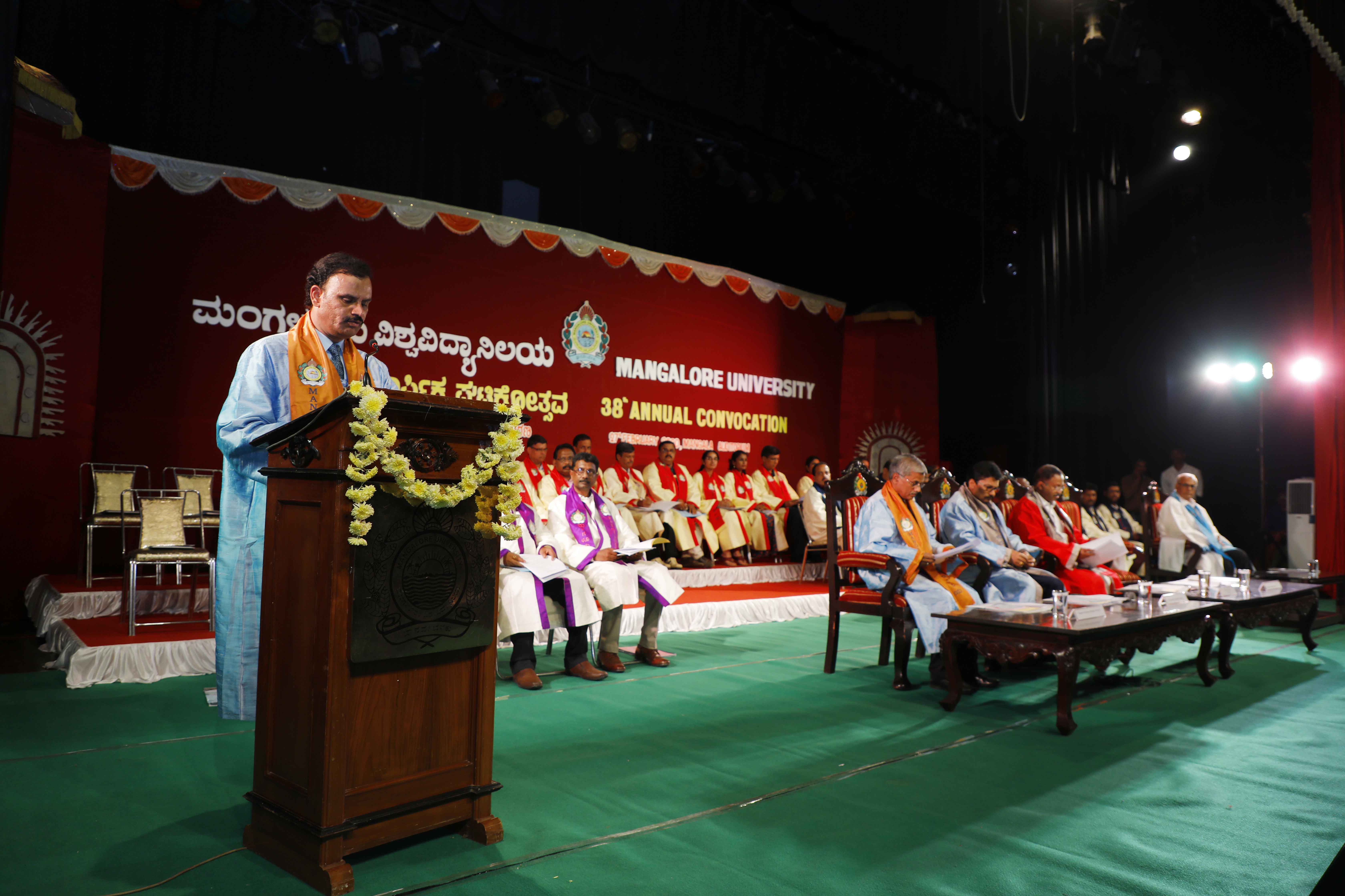 ಮಂಗಳೂರು ವಿಶ್ವವಿದ್ಯಾನಿಲಯ ಕೊಣಾಜೆಯ ಮಂಗಳಾ ಸಭಾಂಗಣದಲ್ಲಿ ಹಮ್ಮಿಕೊಂಡ 38ನೆ ಘಟಿಕೋತ್ಸವ ಸಮಾರಂಭದ ಘಟಿಕೋತ್ಸವ ಭಾಷಣದಲ್ಲಿಂದು ಅವರು ತಿಳಿಸಿದ್ದಾರೆ.