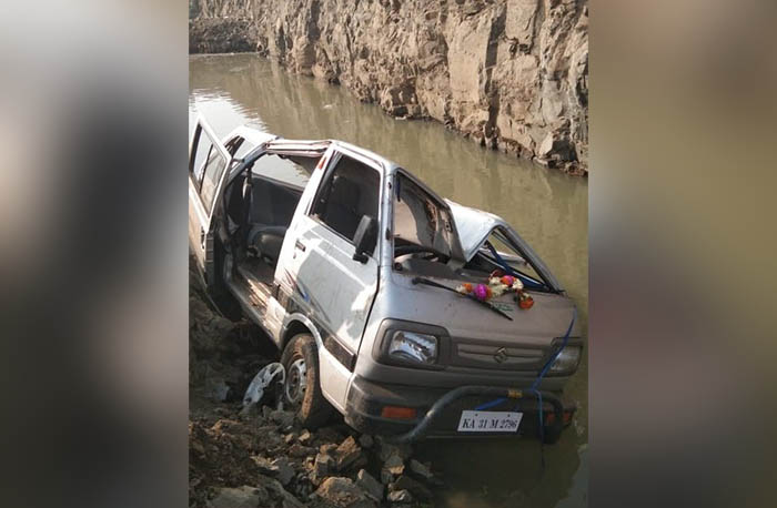 ಖಾಸಗಿ ಬಸ್ ಢಿಕ್ಕಿಯಾಗಿ ಗುಂಡಿಗೆ ಬಿದ್ದ ಓಮ್ನಿ: ಅಜ್ಜಿ- ಮೊಮ್ಮಗಳು ಮೃತ್ಯು