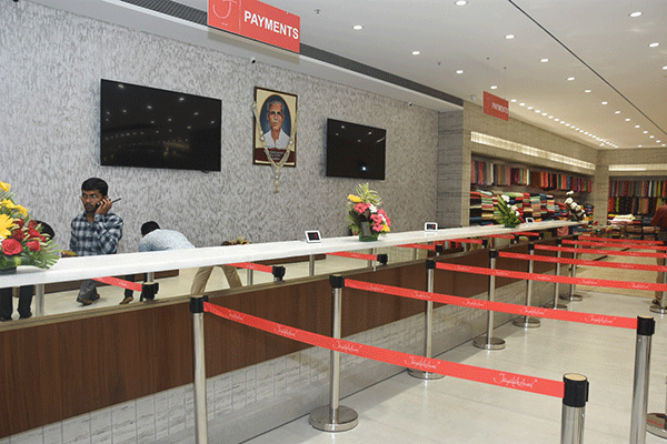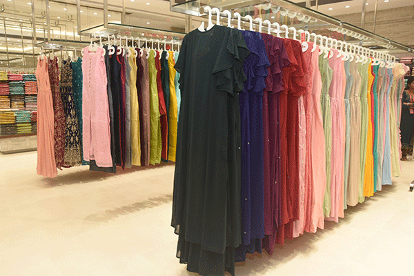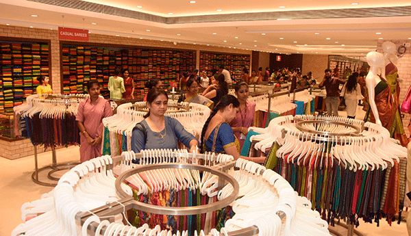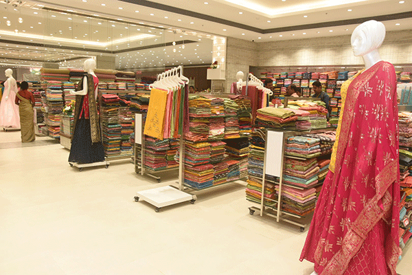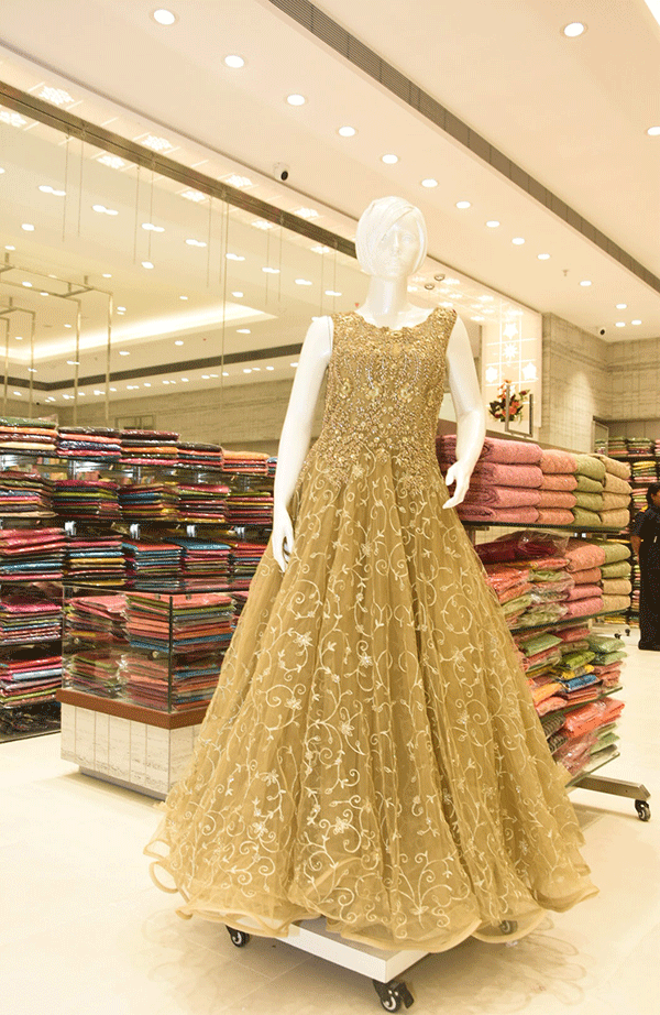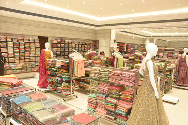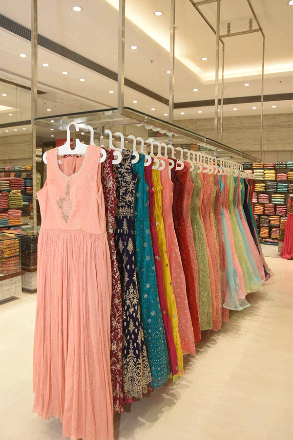 ಬಹುಮಹಡಿ ಕಟ್ಟಡದಲ್ಲಿ ಚೂಡಿದಾರ್, ಚೂಡಿದಾರ್ ಮೆಟೀರಿಯಲ್ಸ್ಗಳು, ಡ್ರೆಸ್ ಮೆಟೀರಿಯಲ್ಸ್ಗಳು, ಎತ್ನಿಕ್ ವೇರ್ಗಳು, (ನೆಲ ಮಹಡಿಯಲ್ಲಿ), ಮಕ್ಕಳ ಉಡುಗೆ ತೊಡುಗೆಗಳು, ಪಾಶ್ಚಿಮಾತ್ಯ ಉಡುಗೆ (1ನೇ ಮಹಡಿಯಲ್ಲಿ), ಪುರುಷರ ಉಡುಗೆ ತೊಡುಗೆಗಳು, ಬ್ಲೌಸ್ ಮೆಟೀರಿಯಲ್ಸ್, ಒಳ ಉಡುಪುಗಳು (2ನೇ ಮಹಡಿಯಲ್ಲಿ) ಲೆಹೆಂಗಾ ಮತ್ತು ಸೀರೆಗಳ ಸಂಗ್ರಹ (3ನೇ ಮಹಡಿಯಲ್ಲಿ). ಕಾರು ಪಾರ್ಕಿಂಗ್ಗಾಗಿ ನೆಲಮಾಳಿಗೆಯಲ್ಲಿರುವ 2 ಮಹಡಿಗಳನ್ನು ಕಾಯ್ದಿರಿಸಿದ್ದು, ಇಲ್ಲಿ ಸುಮಾರು 250 ವಾಹನಗಳ ಪಾರ್ಕಿಂಗ್ ಮಾಡುವ ಅವಕಾಶ ಕಲ್ಪಿಸಲಾಗಿದೆ.