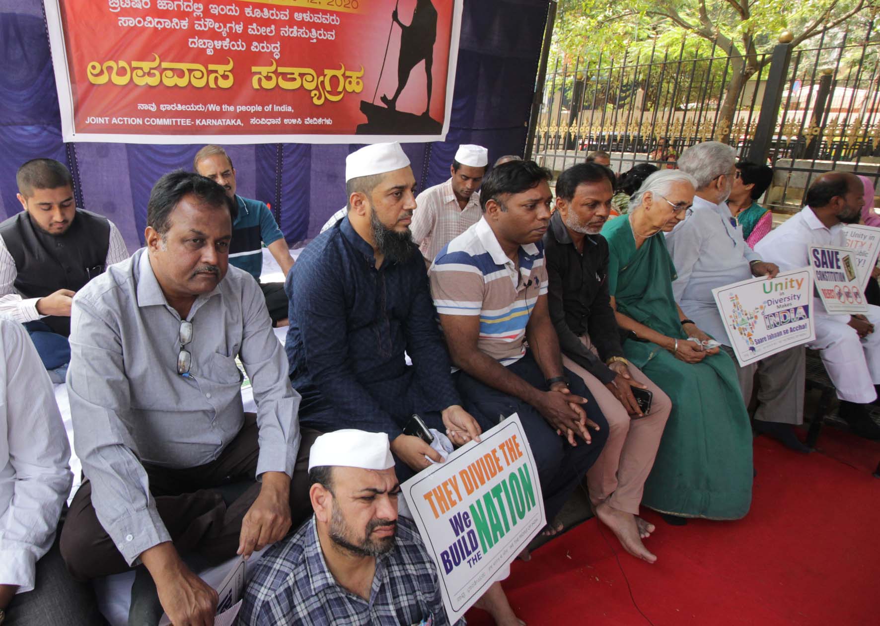 ಬೆಂಗಳೂರು, ಮಾ.12: ಕೇಂದ್ರ ಸರಕಾರ ಜಾರಿಗೆ ಮುಂದಾಗಿರುವ ರಾಷ್ಟ್ರೀಯ ಪೌರತ್ವ ತಿದ್ದುಪಡಿ ಕಾಯ್ದೆ(ಸಿಎಎ), ಎನ್ಪಿಆರ್, ಎನ್ಆರ್ಸಿ ಹಾಗೂ ಹಿಂದೂ ರಾಷ್ಟ್ರ ನಿರ್ಮಾಣ ಹುನ್ನಾರವನ್ನು ವಿರೋಧಿಸಿ ಸಂವಿಧಾನ ರಕ್ಷಣಾ ಸಮಿತಿಯಿಂದ ರಾಜ್ಯಾದ್ಯಂತ ಉಪವಾಸ ಸತ್ಯಾಗ್ರಹವನ್ನು ನಡೆಸಲಾಯಿತು.