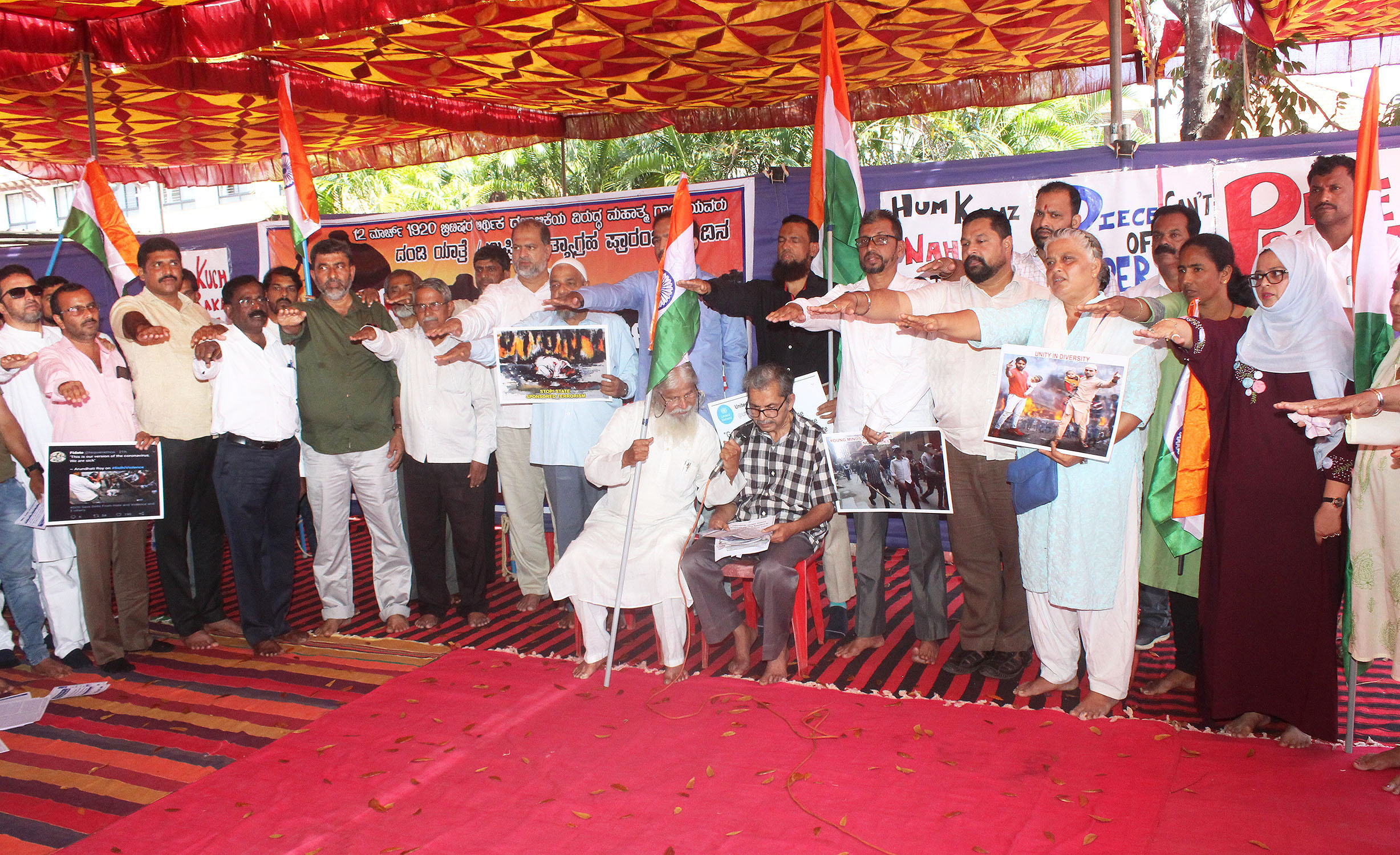 ಸಂವಿಧಾನದ ಪೀಠಿಕೆ ವಾಚಿಸುವ ಮೂಲಕ ಸತ್ಯಾಗ್ರಹಕ್ಕೆ ಚಾಲನೆ ನೀಡಿದ ಹಿರಿಯ ಚಿಂತಕ ಜಿ. ರಾಜಶೇಖರ್ ಮಾತನಾಡಿ, ದೆಹಲಿ ಹಿಂಸಾಚಾರದಲ್ಲಿ 52 ಭಾರತೀಯರು ಮೃತಪಟ್ಟಿದ್ದು, ಅವರನ್ನು ಹಿಂದು-ಮುಸ್ಲಿಮ್ ಎಂಬುದಾಗಿ ವಿಭಜನೆ ಮಾಡುವುದಿಲ್ಲ ಎಂದು ಲೋಕಸಭೆ ಯಲ್ಲಿ ಹೇಳಿಕೆ ನೀಡುವ ಮೂಲಕ ದೇಶದ ಗೃಹ ಸಚಿವರು, ಹಸಿ ಹಸಿ ಸುಳ್ಳು ಹೇಳುತ್ತಿದ್ದಾರೆ. ಯಾಕೆಂದರೆ ಇವರು ಮುಸ್ಲಿಮರನ್ನು ಈ ದೇಶದ ಜನಜೀವನದಿಂದ ಹೊರಗಿಡುವ ಒಳಸಂಚಿ ನಿಂದಲೇ ಪೌರತ್ವ ತಿದ್ದುಪಡಿ ಕಾಯಿದೆಯನ್ನು ಜಾರಿಗೆ ತಂದಿದ್ದಾರೆ ಎಂದು ಟೀಕಿಸಿದರು.