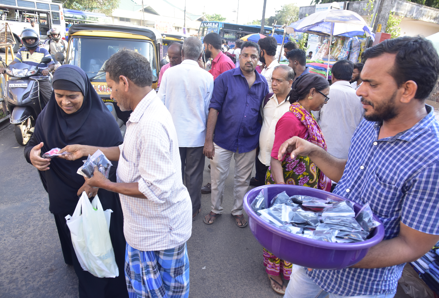 ಮಂಗಳೂರು, ಮಾ.17: ದ.ಕ. ಜಿಲ್ಲಾ ಬೀದಿಬದಿ ವ್ಯಾಪಾರಸ್ಥರ ಸಂಘದ (ಸಿಐಟಿಯು) ಲೇಡಿಗೋಶನ್ ಘಟಕದಿಂದ ಮಾರಕ ರೋಗ ಕೊರೋನ ಸೋಂಕಿನ ಬಗ್ಗೆ ಜಾಗೃತಿ ಮೂಡಿಸಲು ನಗರದ ಲೇಡಿಗೋಶನ್ ಸಮೀಪ ಸಾರ್ವಜನಿಕರಿಗೆ ಉಚಿತವಾಗಿ ಮಾಸ್ಕ್ ವಿತರಣೆ ಮಾಡಲಾಯಿತು.