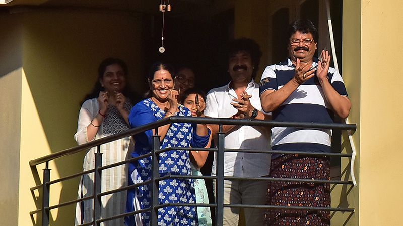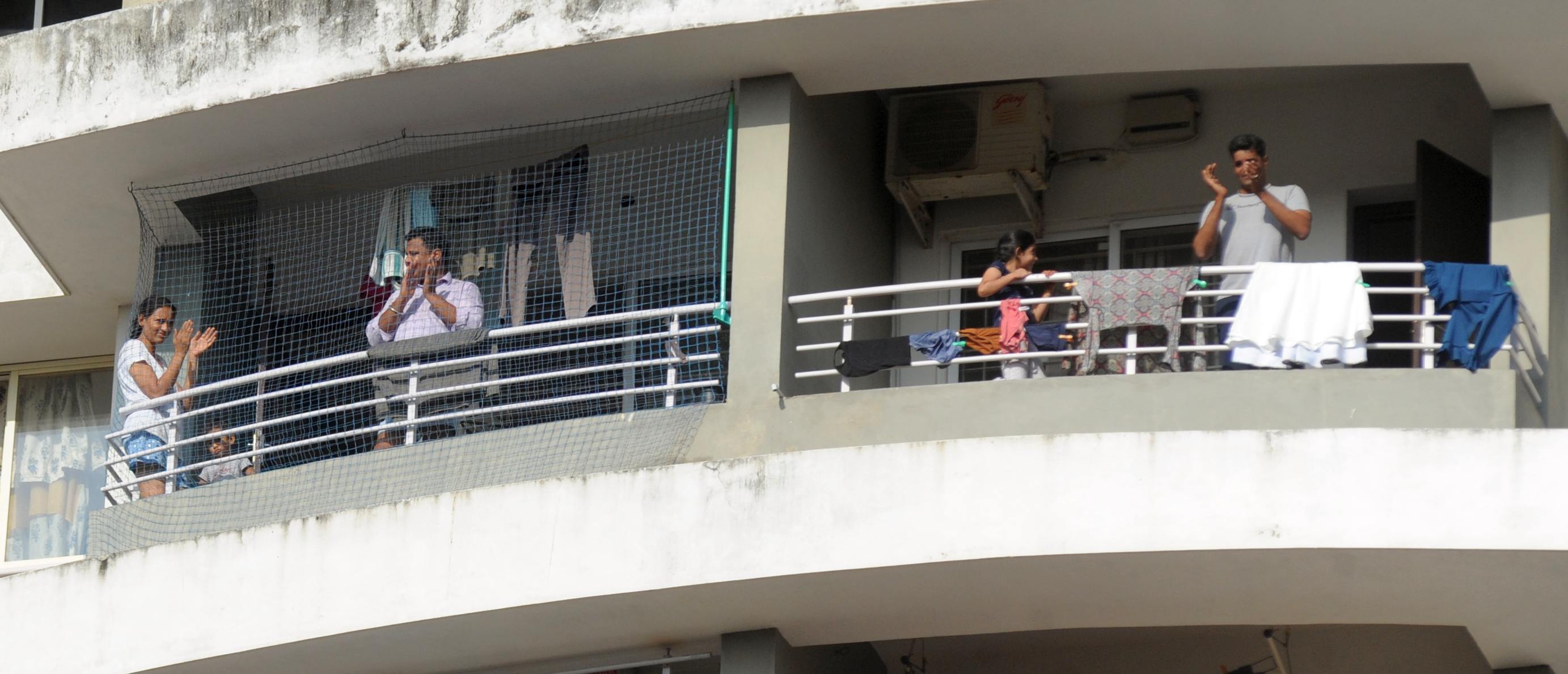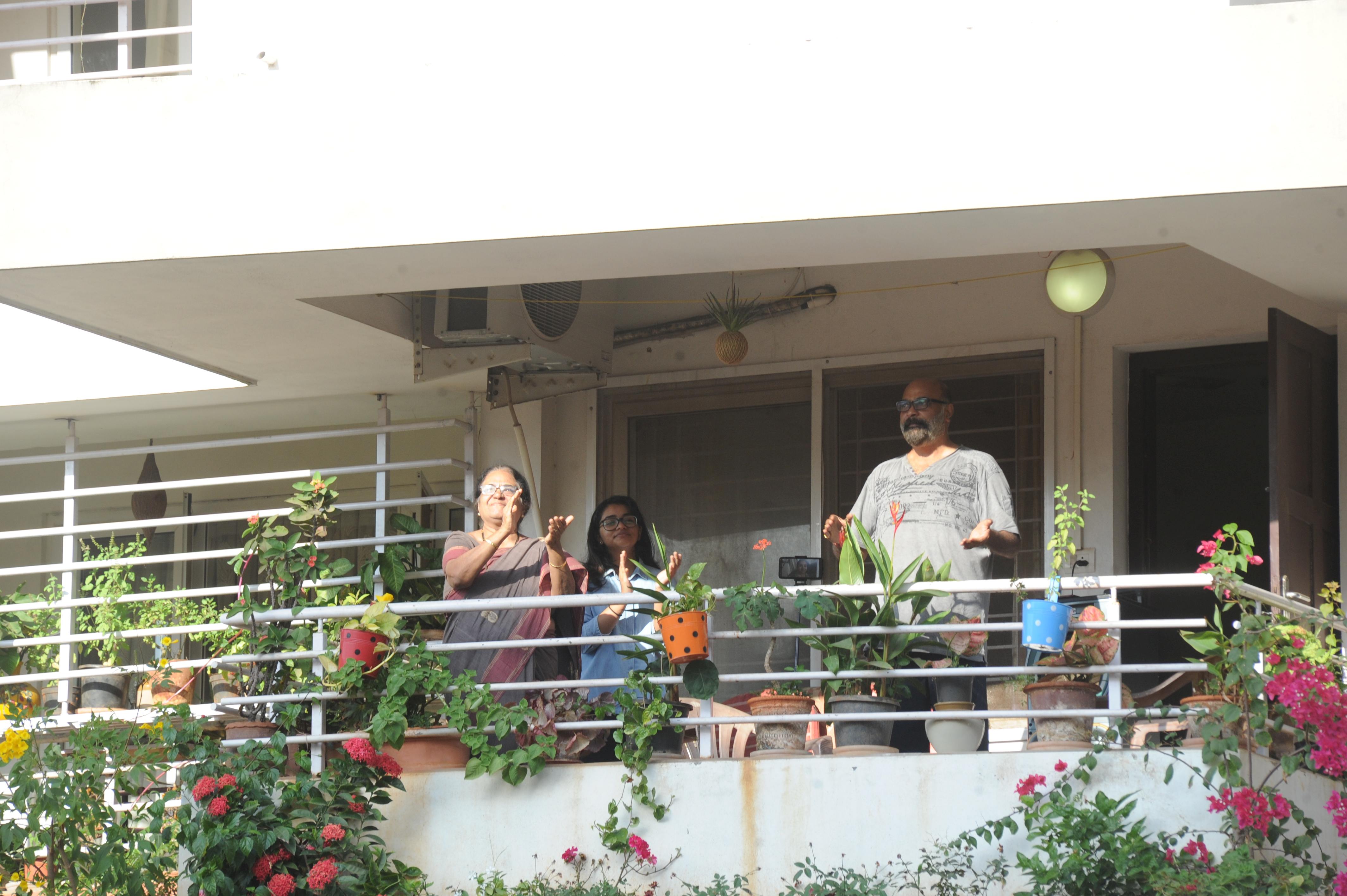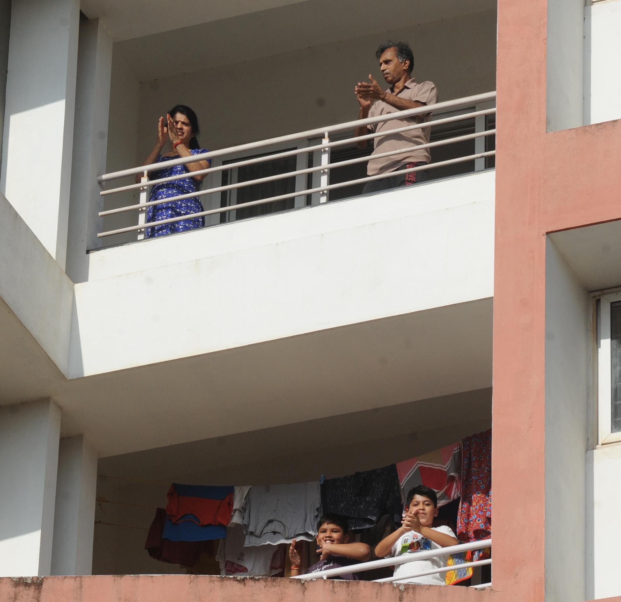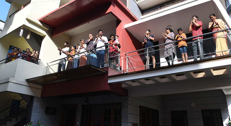 ಮಂಗಳೂರು, ಮಾ.22: ಕೊರೋನ ವೈರಸ್ ತಡೆಗಟ್ಟುವ ಸಲುವಾಗಿ ರಾತ್ರಿ ಹಗಲೆನ್ನದೆ ಸೇವೆಯಲ್ಲಿ ನಿರತರಾದ ಎಲ್ಲರಿಗೂ 'ಚಪ್ಪಾಳೆ' ತಟ್ಟಿ ಗೌರವ ಸಲ್ಲಿಸಲು ಪ್ರಧಾನಿ ಮೋದಿ ಕರೆ ನೀಡಿದಂತೆ ರವಿವಾರ ಸಂಜೆ 5 ಗಂಟೆಯ ವೇಳೆಗೆ ನಗರ ಮತ್ತು ಹೊರವಲಯದ ಬಹುತೇಕ ಮನೆಗಳಲ್ಲಿ, ಫ್ಲಾಟ್ಗಳ ಮಹಡಿಗಳಲ್ಲಿ, ಕಿಟಕಿ-ಬಾಗಿಲ ಬಳಿ ನಿಂತು ಚಪ್ಪಾಳೆ ತಟ್ಟಿದರು.