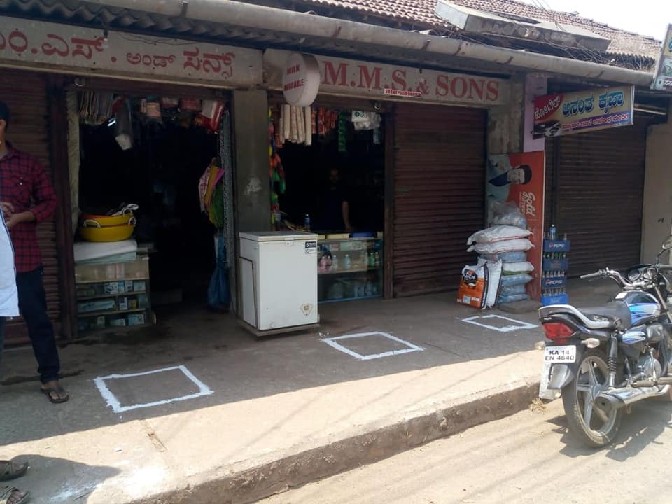 ಕೊರೋನ ಹಿನ್ನೆಲೆಯಲ್ಲಿ 'ಸಾಮಾಜಿಕ ಅಂತರ': ಮಾದರಿಯಾದ ಕೊಪ್ಪದ ಅಂಗಡಿಗಳು