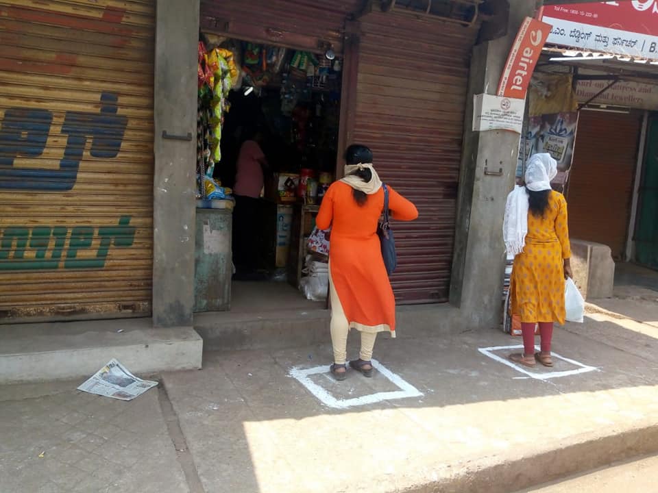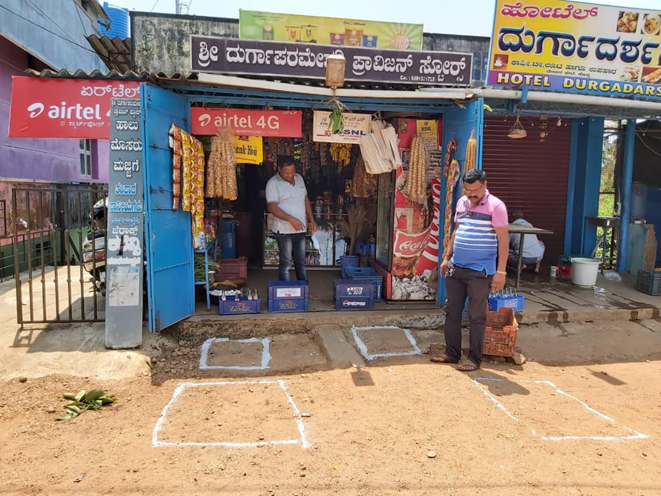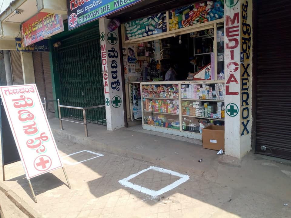 ಲೌಕ್ ಡೌನ್ ಹೊರತಾಗಿಯೂ ದಿನಬಳಕೆಯ ಸಾಮಗ್ರಿಗಳು ಸೇರಿದಂತೆ ಅಗತ್ಯ ವಸ್ತುಗಳ ಖರೀದಿಗೆ ಜನಸಾಮಾನ್ಯರು ಮಾರುಕಟ್ಟೆ ಸೇರಿದಂತೆ ಅಂಗಡಿಗಳ ಎದುರು ಗುಂಪುಗೂಡುತ್ತಿದ್ದಾರೆ. ಸಾಮಾಜಿಕ ಅಂತರ ಕಾಯ್ದುಕೊಳ್ಳಬೇಕೆಂಬ ನಿಯಮವನ್ನೇ ಮರೆತು ನೂರಾರು ಸಂಖ್ಯೆಯಲ್ಲಿ ಸೇರುತ್ತಿದ್ದಾರೆ. ಹೀಗಾಗಿ ಸ್ವತಃ ಅಂಗಡಿ, ಮೆಡಿಕಲ್ ಗಳ ಮಾಲಕರೇ ಈ ಬಗ್ಗೆ ಜಾಗೃತರಾಗಿದ್ದು, 'ಸಾಮಾಜಿಕ ಅಂತರ'ದ ಮೂಲಕ ಕೊರೋನ ಹರಡದಂತೆ ಮುನ್ನೆಚ್ಚರಿಕೆ ವಹಿಸುವಲ್ಲಿ ಇತರರಿಗೆ ಮಾದರಿಯಾಗಿದ್ದಾರೆ.
