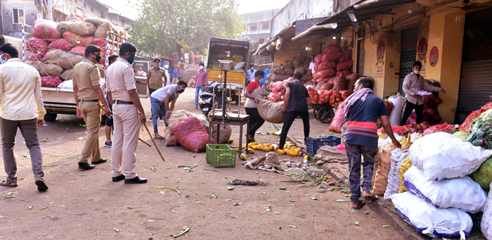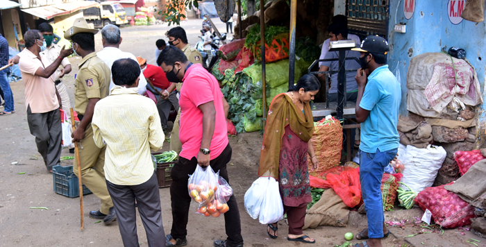 ನಗರದ ಕೇಂದ್ರ ಮಾರುಕಟ್ಟೆಯಲ್ಲಿ ಸಮಾರು 7.30 ರವರಗೆ ಸಗಟು ವ್ಯಾಪಾರಸ್ಥರಿಗೆ ಸಮಯ ನೀಡಿದ್ದು ತದನಂತರ ಪೊಲೀಸರು ಎಚ್ಚರಿಕೆ ನೀಡಿ ಅಂಗಡಿಮುಗಟ್ಟುಗಳನ್ನು ಮುಚ್ಚಿಸಿದರು.
