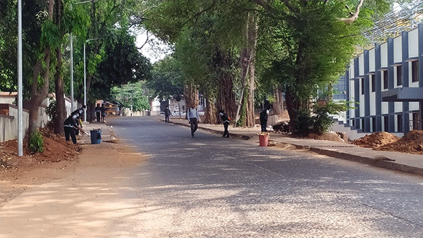 ಅಲ್ಲೊಂದು ಇಲ್ಲೊಂದು ದ್ವಿಚಕ್ರ, ಕಾರುಗಳು ಸಾಗಾಟದ ಹೊರತಾಗಿ ನಗರದ ಬೀದಿಗಳು ಸ್ತಬ್ಧಗೊಂಡಿವೆ. ಸಾವಿರಾರು ಸಂಖ್ಯೆಯಲ್ಲಿ ವಾಹನಗಳು ಸಂಚರಿಸುತ್ತಿದ್ದ ರಸ್ತೆಗಳು ಬಿಕೋ ಎನ್ನುತ್ತಿವೆ. ಅಂಗಡಿ, ಮಾಲ್ಗಳು, ಕಟ್ಟಡಗಳು ಬಾಗಿಲು ಮುಚ್ಚಿವೆ. ನಗರದ ಜಂಕ್ಷನ್ಗಳಲ್ಲಿ ಇಂದು ಬಹುತೇಕವಾಗಿ (ಸೆಂಟ್ರಲ್ ಮಾರುಕಟ್ಟೆ ಹೊರತುಪಡಿಸಿ) ಪೊಲೀಸರ ಸಂಖ್ಯೆಯೂ ವಿರಳವಾಗಿದೆ. ಆದರೆ ನಗರದ ಪ್ರಮುಖ ರಸ್ತೆಗಳಲ್ಲಿ ಪೌರ ಕಾರ್ಮಿಕರು ಮಾತ್ರ ಪೊರಕೆ ಹಿಡಿದುಕೊಂಡು ತಮ್ಮ ಕರ್ತವ್ಯವನ್ನು ನಿರ್ವಹಿಸುತ್ತಿದ್ದಾರೆ. ಬಿಸಿಲು, ಧೂಳಿನ ನಡುವೆಯೂ ಇವರ ಕಾರ್ಯ ಸಾಗಿದೆ. ಇವರ ಕಾರ್ಯಕ್ಕೆ ನಾವು ಭೇಷ್ ಅನ್ನಬೇಕಲ್ಲವೇ?