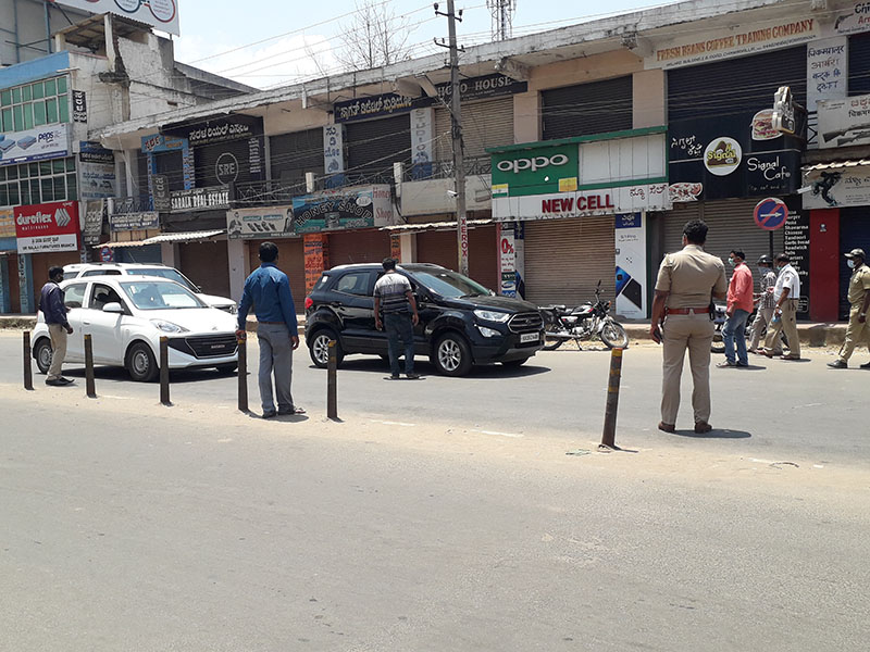 ಜನಸಂಚಾರ ಹೆಚ್ಚಾಗುತ್ತಿದ್ದಂತೆ ಎಚ್ಚೆತ್ತುಕೊಂಡ ಪೊಲೀಸರು ನಗರದ ಎಂ.ಜಿ.ರಸ್ತೆ, ಐಜಿರಸ್ತೆ. ಮಾರ್ಕೇಟ್ ರಸ್ತೆ, ಕತ್ರಿಮಾರಮ್ಮ ದೇವಾಲಯ, ಬೋಳರಾಮೇಶ್ವರ ದೇವಾಲಯ ರಸ್ತೆಗಳಲ್ಲಿ ಚೆಕ್ಪೋಸ್ಟ್ ಹಾಕಿ ಬೈಕ್ ಮತ್ತು ಕಾರುಗಳಲ್ಲಿ ಓಡಾಡುವವರನ್ನು ತಡೆದು ಯಾವ ಉದ್ದೇಶಕ್ಕೆ ಹೋಗಲಾಗುತ್ತಿದೆ ಎಂದು ವಿಚಾರಿಸಿ, ಸಕಾರಣ ನೀಡಿದರೆ ಮಾತ್ರ ವಾಹನಗಳನ್ನು ಬಿಡುತ್ತಿದ್ದರು. ಅನಗತ್ಯವಾಗಿ ಓಡಾಡುವರ ಬೈಕ್ಗಳನ್ನು ಸೀಝ್ ಮಾಡಿ ಸವಾರರನ್ನು ಮನೆಗೆ ಕಳಿಸಲಾಗುತ್ತಿತ್ತು. ಬೈಕ್ ಸವಾರರನ್ನು ತಪಾಸಣೆ ನಡೆಸಿ ದಾಖಲೆ ಇಲ್ಲದವರಿಗೆ ದಂಡ ಹಾಕಿದರು.