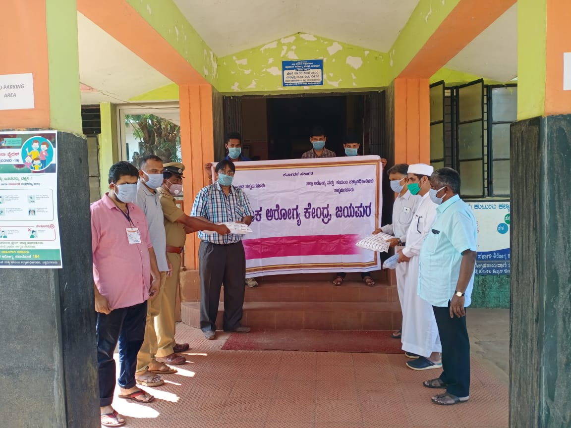 ಜಯಪುರ ಪ್ರಾಥಮಿಕ ಆರೋಗ್ಯ ಕೇಂದ್ರದ ಮುಖ್ಯ ಆರೋಗ್ಯಾಧಿಕಾರಿ ಡಾ. ಸುಧೀಂದ್ರ ಅವರಿಗೆ ಬದ್ರಿಯಾ ಜಮಾಅತ್ ಅಧ್ಯಕ್ಷ ಹಾಜಿ ಅಬುಲ್ ಕಲಾಂ, ಉಪಾಧ್ಯಕ್ಷ ಹಾಜಿ ಅಬ್ದುಲ್ ಅಝೀಝ್ ಕಿಟ್ ಗಳನ್ನು ಹಸ್ತಾಂತರಿಸಿದರು. ಮೌಲಾನಾ ಕೆ ಎಂ ಅಬೂಬಕರ್ ಸಿದ್ದೀಖ್, ಜಯಪುರ ಪೊಲೀಸ್ ಠಾಣಾಧಿಕಾರಿ ಸತೀಶ್, ಪ್ರಮುಖರಾದ ಹಾಜಿ ಅಬೂಬಕರ್, ಅಬ್ದುಲ್ ಲತೀಫ್ ಉಪಸ್ಥಿತರಿದ್ದರು.