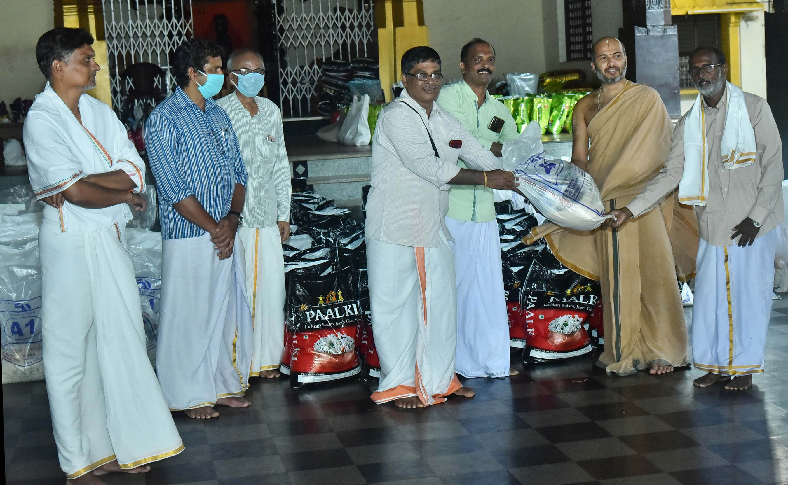 ಅದಮಾರು ಮಠ ವತಿಯಿಂದ ಬಡ ಕುಟುಂಬಗಳಿಗೆ ದಿನವಹಿ ಸಾಮಗ್ರಿಗಳ ಕಿಟ್ ವಿತರಣೆ