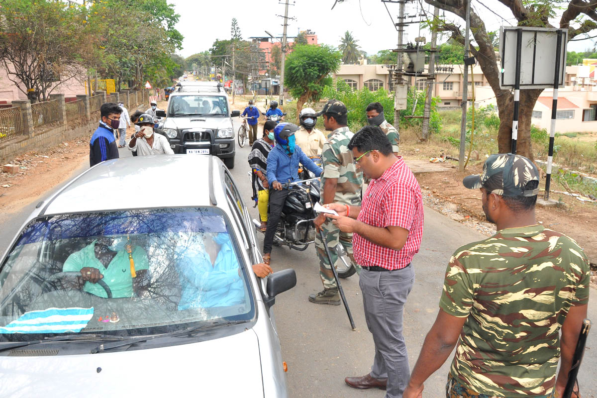 ಜನರ ಓಡಾಟ ಹಾಗೂ ವಾಹನಗಳ ಸಂಚಾರವನ್ನು ಕಡಿಮೆ ಮಾಡುವ ನಿಟ್ಟಿನಲ್ಲಿ ಜಿಲ್ಲಾ ಪೊಲೀಸ್ ವರಿಷ್ಠಾಧಿಕಾರಿ ಹರೀಶ್ ಪಾಂಡೆ ಅವರು ಕಳೆದ ಎರಡು ದಿನಗಳಿಂದ ರಸ್ತಗಿಳಿದು ವಾಹನಗಳ ತಪಾಸಣಾ ಕೆಲಸವನ್ನು ಬಿಗಿಗೊಳಿಸಿದ್ದಾರೆ. ಬುಧವಾರ ನಗರದ ಬೋಳರಾಮೇಶ್ವರ ದೇವಾಲಯ ಸಮೀಪದ ಚಕ್ಪೋಸ್ಟ್ ಗೆ ಭೇಟಿ ನೀಡಿದ್ದ ಎಸ್ಪಿ ಹರೀಶ್ ಪಾಂಡೆ ತಾವೇ ವಾಹನಗಳನ್ನು ತಪಾಸಣೆಗೆ ಒಳಪಡಿಸಿದರು.