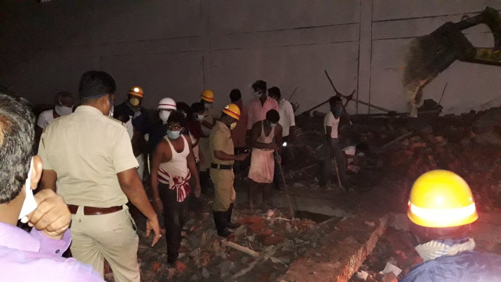 ಪಟ್ಟಣದ ಹೊರವಲಯದ ಕ್ರೀಡಾಂಗಣದಲ್ಲಿ ಒಳಾಂಗಣದ ಕಾಮಗಾರಿ ನಡೆಯುತ್ತಿದ್ದು, ಕಾಮಗಾರಿ ವೇಳೆ ಗೋಡಿ ಕುಸಿದು ಈ ಅವಘಡ ಸಂಭವಿಸಿದೆ. ಗೋಡೆ ಕುಸಿದ ಶಬ್ದ ಕೇಳುತ್ತಿದ್ದಂತೆಯೇ ಮತ್ತೊಂದು ಭಾಗದಲ್ಲಿದ್ದ ಏಳು ಮಂದಿ ಕಟ್ಟಡ ಕಾರ್ಮಿಕರು ಹೊರಓಡಿದ್ದು, ಅದೃಷ್ಟವಶಾತ್ ಪ್ರಾಣಾಪಾಯದಿಂದ ಪಾರಾಗಿದ್ದಾರೆ ಎಂದು ತಿಳಿದುಬಂದಿದೆ.
