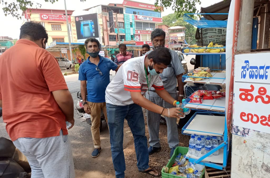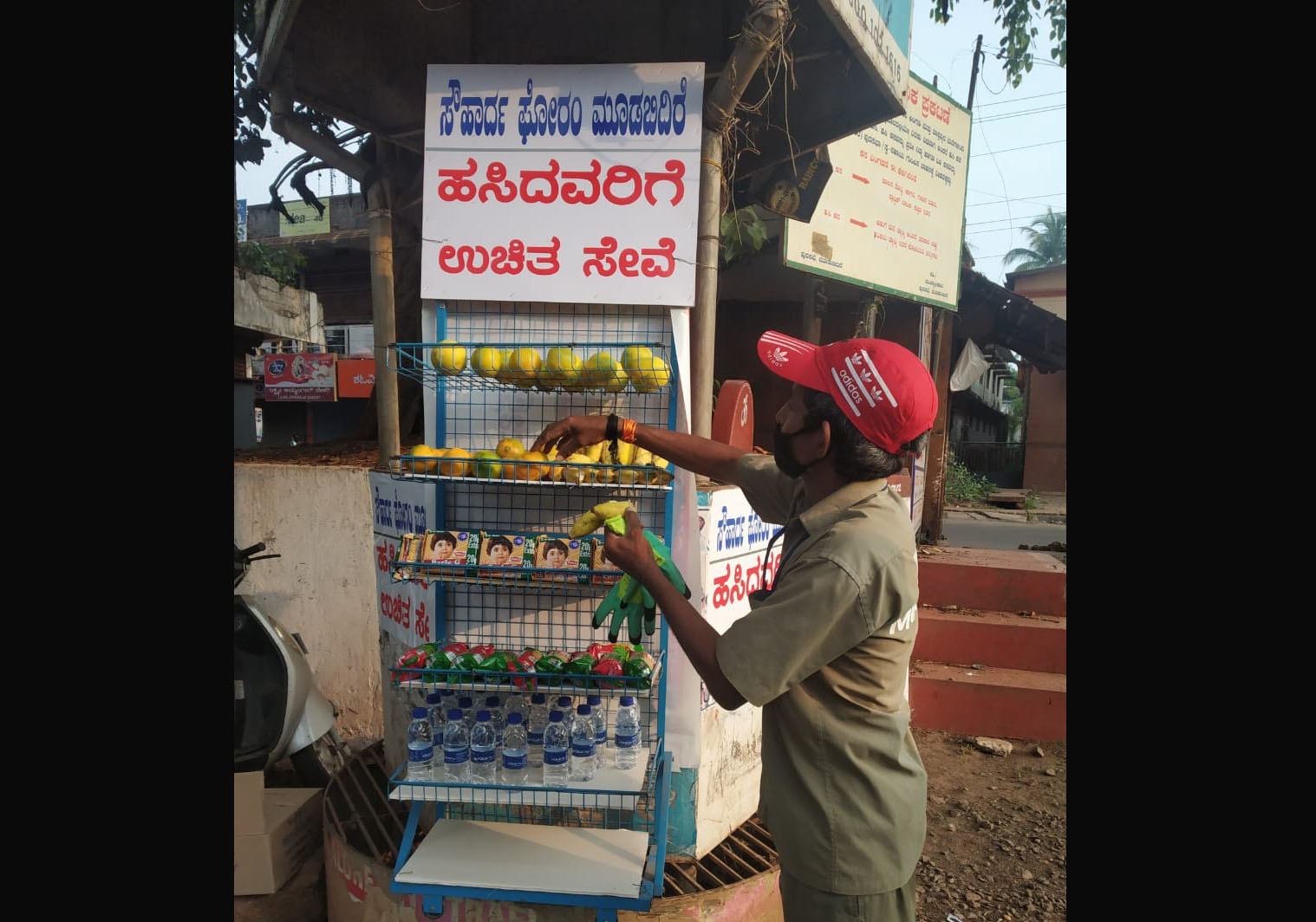 ಓರ್ವ ಸಿಬ್ಬಂದಿ ನೇಮಕ: ಲಾಕ್ಡೌನ್ ಹಿನ್ನೆಲೆಯಲ್ಲಿ ಹಸಿವು ನೀಗಿಸಲು ಏನಾದರು ಹೊಸ ವ್ಯವಸ್ಥೆ ಮಾಡಬೇಕು ಎಂದು ಆಶಿಸಿ ಒಂದು ವಾರದ ಹಿಂದೆ ನಾವು ಈ ‘ಫುಡ್ ಸ್ಟ್ಯಾಂಡ್’ ಅಳವಡಿಸಿದ್ದೇವೆ. ಮೊದಲ ದಿನ ಜನರು ಇದನ್ನು ಹೇಗೆ ಸ್ವೀಕರಿಸಬಹುದು ಎಂಬ ಕಲ್ಪನೆಯೂ ನಮಗೆ ಇರಲಿಲ್ಲ. ಹಣ್ಣು ಹಂಪಲು, ನೀರನ್ನು ಶೇಖರಿಸಿಟ್ಟ ಕ್ಷಣಾರ್ಧದಲ್ಲಿ ಖಾಲಿಯಾಗತೊಡಗಿತು. ಅಂದರೆ ಹಸಿದವರು ಇಲ್ಲೇ ಇದನ್ನು ತಿನ್ನುವ ಬದಲು ಕೈಗೆ ಸಿಕ್ಕಷ್ಟು ಬಾಚಿಕೊಂಡು ಹೋಗತೊಡಗಿದರು. ಇದು ನಮಗೆ ಸಮಸ್ಯೆ ಮಾತ್ರವಲ್ಲ, ಸವಾಲು ಕೂಡ ಆಯಿತು. ಹಾಗಾಗಿ ನಾವು ಒಬ್ಬ ಸಿಬ್ಬಂದಿಯನ್ನು ನೇಮಿಸಿದೆವು. ಆ ಬಳಿಕ ಹಸಿದವರು ಇಲ್ಲೇ ತಿನ್ನತೊಡಗಿದ್ದಾರೆ. ಯಾರೂ ಕೈಗೆತ್ತಿಕೊಂಡು ಹೋಗುತ್ತಿಲ್ಲ. ಹಸಿದವರು ಎಷ್ಟು ಬೇಕಾದರು ತಿನ್ನಬಹುದು. ಆದರೆ ವ್ಯರ್ಥ ಮಾಡುವಂತಿಲ್ಲ. ಮಾನವೀಯ ದೃಷ್ಟಿಯಿಂದ ಆರಂಭಿಸಿದ ನಮ್ಮ ಈ ಸೇವೆಗೆ ಪೊಲೀಸ್ ಇಲಾಖೆ ಸಹಿತ ಸಾರ್ವಜನಿಕ ವಲಯದಿಂದ ವ್ಯಾಪಕ ಪ್ರಶಂಸೆ ವ್ಯಕ್ತವಾಗಿದೆ. ಸರಕಾರ ಲಾಕ್ಡೌನ್ ಹಿಂದಕ್ಕೆ ಪಡೆಯುವವರೆಗೆ ಇದು ಮುಂದುವರಿಯುತ್ತಿದೆ. ಹಸಿದವರ ಹೊಟ್ಟೆ ತಣಿಸಲು ದಾನಿಗಳು ಕೂಡ ಮುಂದೆ ಬರಬಹುದು. ಹಣ್ಣು ಹಂಪಲು, ನೀರಿನ ಬಾಟಲಿನ ವ್ಯವಸ್ಥೆ ಕಲ್ಪಿಸಿ ನಮ್ಮೀ ಸೇವೆಯೊಂದಿಗೆ ಕೈ ಜೋಡಿಸಬಹುದು.