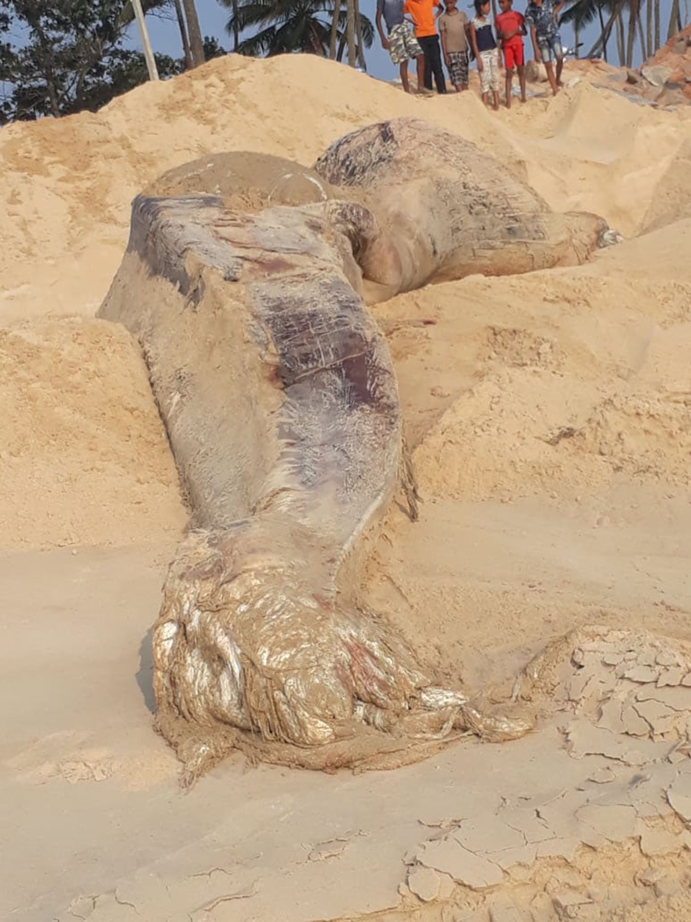 ಸುಮಾರು 25 ಅಡಿ ಉದ್ದದ ಈ ಭಾರೀ ಗಾತ್ರದ, ತೂಕದ ಮೀನು ಪಶ್ಚಿಮ ಕರಾವಳಿಯ ತೀರ ಪ್ರದೇಶದಲ್ಲಿ ಕಾಣಬರುವುದು ತೀರಾ ಅಪರೂಪವೆಂದು ಹೇಳಬಹುದು. ತಿನ್ನಲು ಯೋಗ್ಯವಲ್ಲದ ಈ ತಿಮಿಂಗಿಲವನ್ನು, ವಿಲೇವಾರಿ ಮಾಡಲು ಸ್ಥಳೀಯ ಗ್ರಾಪಂ ಹರಸಾಹಸವನ್ನೇ ಪಡಬೇಕಾಯಿತು.ಜೆಸಿಬಿ ತಂದು ಕಡಲ ತೀರ ಪ್ರದೇಶದಲ್ಲಿ ಹೊಂಡ ಮಾಡಿ ಈ ಬೃಹತ್ ಗಾತ್ರದ ತಿಮಿಂಗಿಲ ವನ್ನು ಹೂಳಲಾಯಿತು.