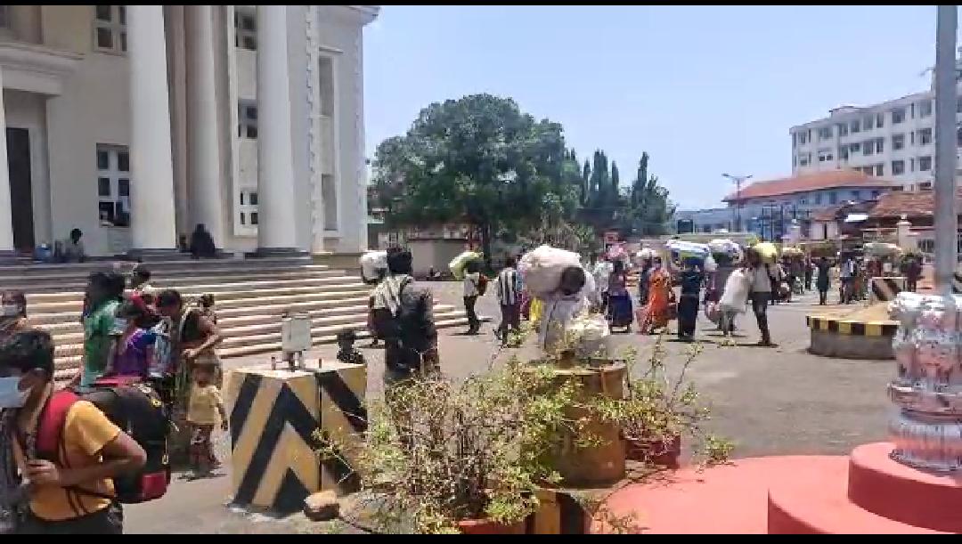 ಮಂಗಳೂರು, ಎ.28: ಲಾಕ್ಡೌನ್ನಿಂದ ಅಡಕತ್ತರಿಯಲ್ಲಿ ಸಿಲುಕಿರುವ ವಲಸೆ ಕಾರ್ಮಿಕರನ್ನು ಅವರವರ ಊರಿಗೆ ತಲುಪಿಸುವ ಪ್ರಕ್ರಿಯೆ ದ.ಕ. ಜಿಲ್ಲೆಯಲ್ಲಿ ಬಿರುಸುಗೊಂಡಿರುವ ಮಧ್ಯೆಯೇ ಮಂಗಳವಾರ ನಗರದ ಪುರಭವನದ ಆವರಣದಲ್ಲಿ ನೂರಾರು ವಲಸೆ ಕಾರ್ಮಿಕರು ಜಮಾಯಿಸಿದ್ದಾರೆ.