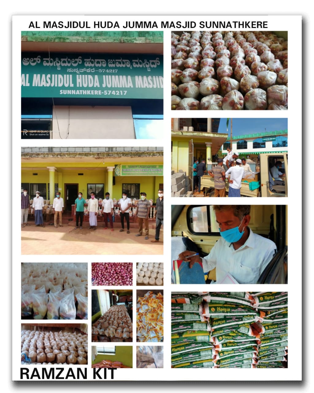 ಕೊರೋನ ವೈರಸ್ ಭೀತಿಯಲ್ಲಿ ದೇಶಾದ್ಯಂತ ಲಾಕ್ ಡೌನ್ ನಿಂದ ಸಂಕಷ್ಟದಲ್ಲಿರುವ ಈ ಸಮಯದಲ್ಲಿ ನಮ್ಮ ಜಮಾ-ಅತ್ ನ ಆಡಳಿತ ಮಂಡಳಿಯು ಉತ್ತಮ ಯೋಜನೆಯ ಮೂಲಕ ಅಕ್ಕಿ ಹಾಗೂ ಆಹಾರ ಸಾಮಗ್ರಿಗಳ ಕಿಟ್ ವಿತರಿಸಲಾಯಿತು ಎಂದು ಜಮಾಅತ್ ಕಮಿಟಿಯ ಪದಾಧಿಕಾರಿಗಳು ತಿಳಿಸಿದ್ದಾರೆ.