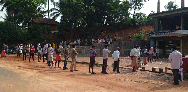 ಬೆಳ್ತಂಗಡಿಯ ಮದ್ಯದ ಅಂಗಡಿಯೆದುರು ಸರತಿ ಸಾಲು
