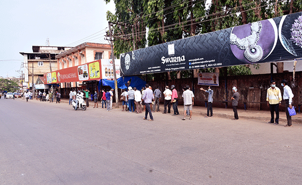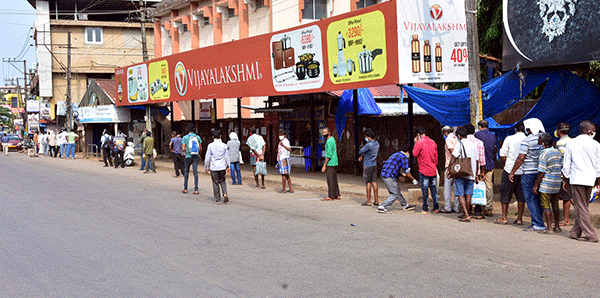 ಲಾಕ್ಡೌನ್ ಸಡಿಲಿಕೆ: ದ.ಕ. ಜಿಲ್ಲೆಯ ಅಲ್ಲಲ್ಲಿ ತೆರೆದ ಅಂಗಡಿಗಳು, ಮದ್ಯದಂಗಡಿಗಳೆದುರು ಸರತಿ ಸಾಲು!