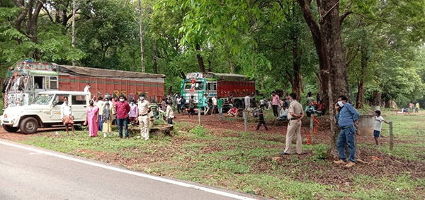 ಗುಂಡ್ಯ: ವಲಸೆ ಕಾರ್ಮಿಕರನ್ನು ಅಕ್ರಮವಾಗಿ ಕರೆದೊಯ್ಯುತ್ತಿದ್ದ 2 ಲಾರಿಗಳಿಗೆ ತಡೆ