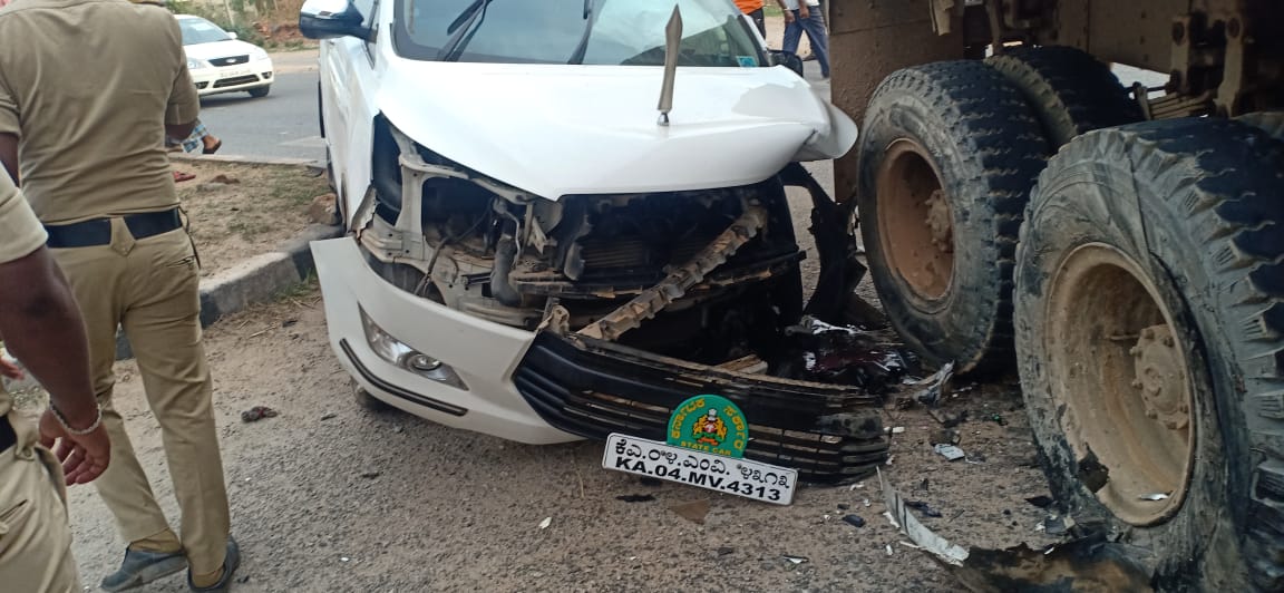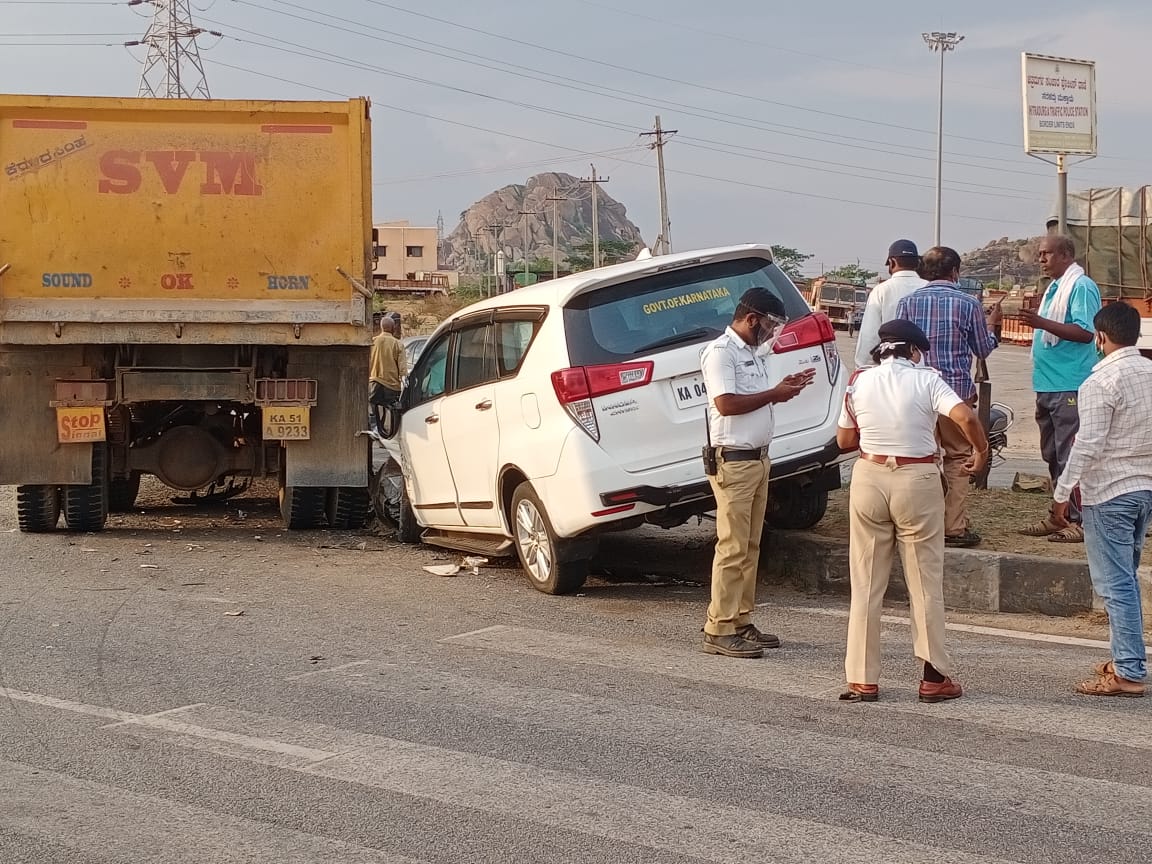 ಚಿತ್ರದುರ್ಗದ ಮುರುಘಾ ಮಠದ ರಾಷ್ಟ್ರೀಯ ಹೆದ್ದಾರಿ ನಾಲ್ಕರಲ್ಲಿ ಶನಿವಾರ ಘಟನೆ ಸಂಭವಿಸಿದ್ದು, ಎಲ್.ಕೆ.ಅತೀಕ್ ಅವರು ಸಂಚರಿಸುತ್ತಿದ್ದ ಇನ್ನೋವಾ ಕಾರಿಗೆ ಲಾರಿ ಢಿಕ್ಕಿಯಾಗಿದೆ ಎಂದು ತಿಳಿದುಬಂದಿದೆ.