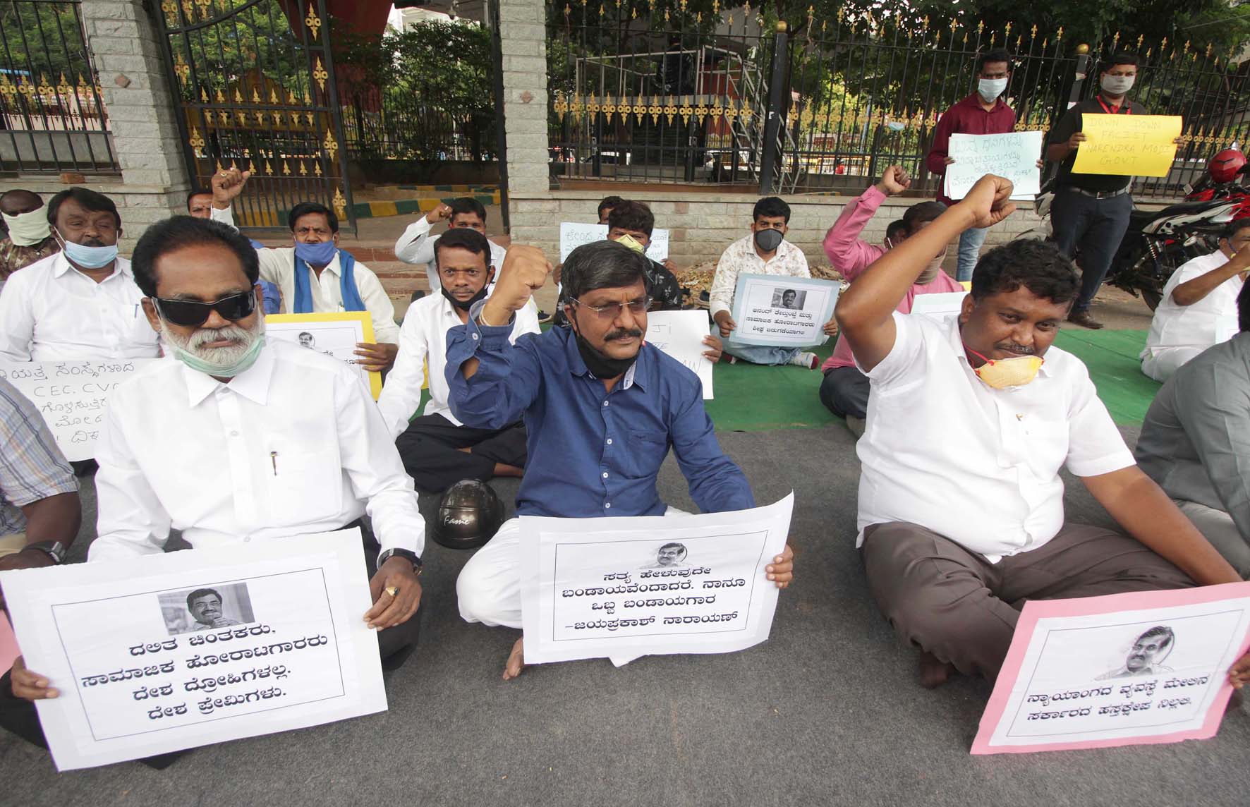 ಗುರುವಾರ ಬೆಂಗಳೂರಿನಲ್ಲಿ ದಲಿತ ಸಂಘರ್ಷ ಸಮಿತಿ(ಅಂಬೇಡ್ಕರ್ ವಾದ) ಸದಸ್ಯರು ಬೃಹತ್ ಪ್ರತಿಭಟನೆ ನಡೆಸಿದರು. ನಗರದ ಮೌರ್ಯ ವೃತ್ತದ ಗಾಂಧಿ ಪ್ರತಿಮೆ ಎದುರು ಜಮಾಯಿಸಿದ ದಸಂಸ ಸದಸ್ಯರು, ಕೇಂದ್ರ ಸರಕಾರದ ವಿರುದ್ಧ ಘೋಷಣೆಗಳನ್ನು ಕೂಗಿ, ಬಂಧಿತರನ್ನು ಈ ಕೂಡಲೇ ಬಿಡುಗಡೆ ಮಾಡಬೇಕೆಂದು ಆಗ್ರಹಿಸಿದರು.