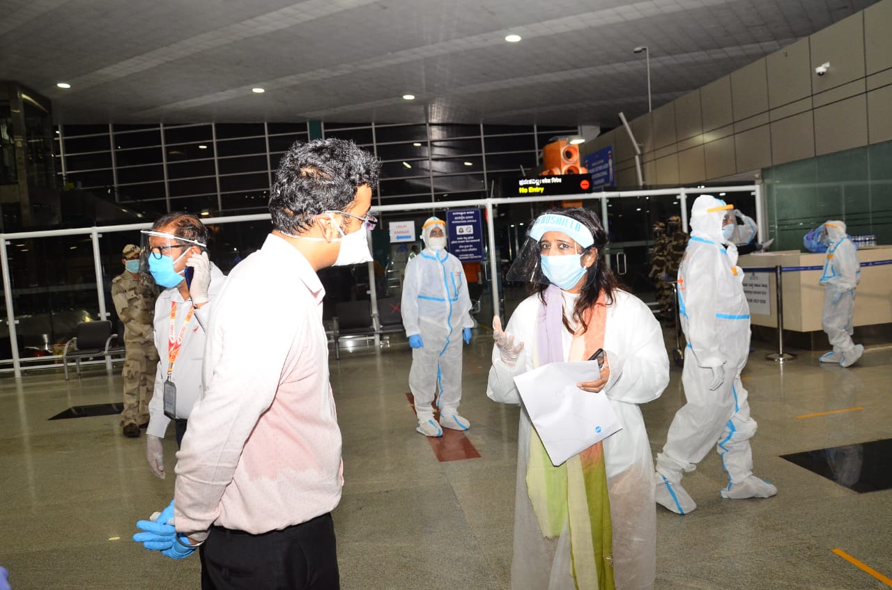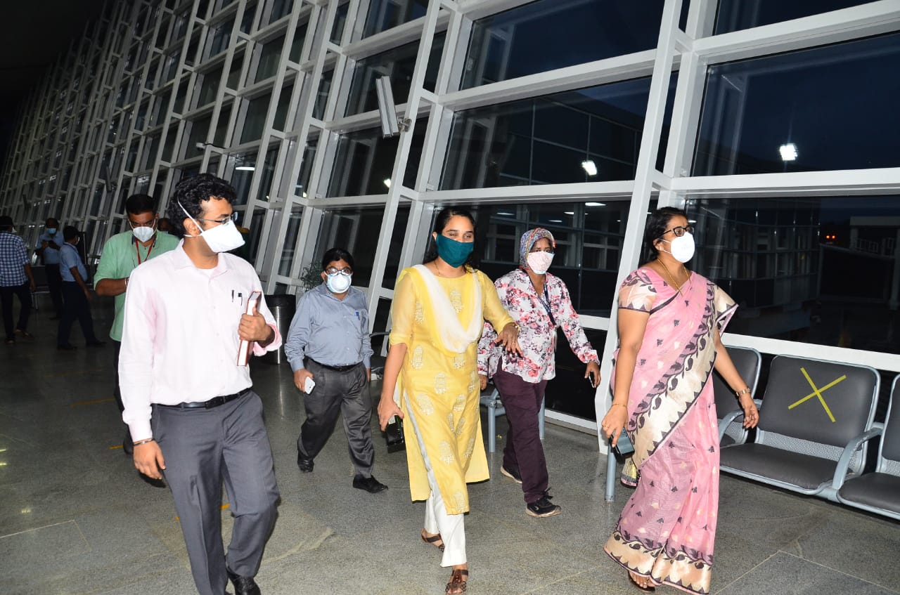 ವಿಮಾನ ಆಗಮನ ಸಂದರ್ಭದಲ್ಲಿ ಜಿಲ್ಲಾಧಿಕಾರಿ ಸಿಂಧೂ ಬಿ. ರೂಪೇಶ್, ಅಪರ ಜಿಲ್ಲಾಧಿಕಾರಿ ರೂಪಾ, ಪ್ರೊಬೇಷನರಿ ಐಎಎಸ್ ಅಧಿಕಾರಿ ರಾಹುಲ್ ಶಿಂಧೆ, ಜಿಲ್ಲಾ ಆರೋಗ್ಯಾಧಿಕಾರಿ ಡಾ. ರಾಮಚಂದ್ರ ಬಾಯರಿ, ವಿಮಾನ ನಿಲ್ದಾಣ ನಿರ್ದೇಶಕ ವಿ.ವಿ. ರಾವ್, ಆರೋಗ್ಯ ಇಲಾಖೆಯ ಹಿರಿಯ ಅಧಿಕಾರಿಗಳು ಇದ್ದರು.