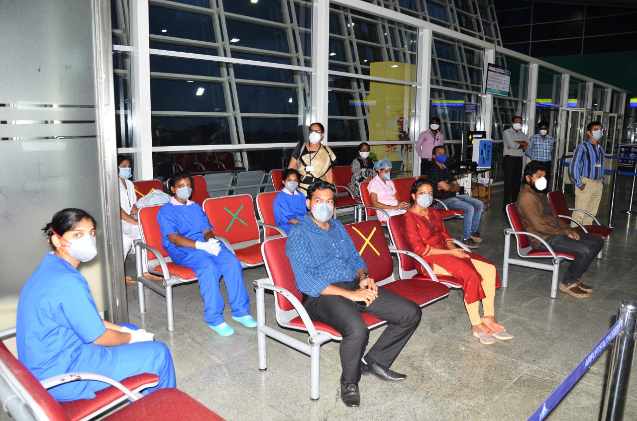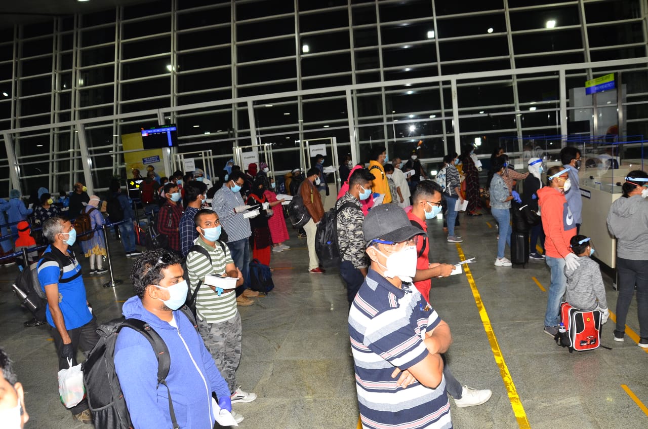 ಪ್ರಯಾಣಿಕರಿಗೆ ಇಳಿದ ನಂತರ ವಿಮಾನ ನಿಲ್ದಾಣದಲ್ಲಿ ಹಣ ವರ್ಗಾವಣೆ, ಸಿಮ್ ವಿತರಣೆ, ಆರೋಗ್ಯ ಕಿಟ್ ವಿತರಣೆ, ಉಪಹಾರ ವ್ಯವಸ್ಥೆ ಮಾಡಲಾಯಿತು. ನಂತರ ಆರೋಗ್ಯ ಇಲಾಖೆಯ ತಪಾಸಣಾ ತಂಡದಿಂದ ಪ್ರತೀ ಪ್ರಯಾಣಿಕರ ಆರೋಗ್ಯ ತಪಾಸಣೆ ಮಾಡಲಾಯಿತು. ಪ್ರಯಾಣಿಕರಿಗೆ ಸ್ಟ್ಯಾಂಪಿಂಗ್ ಮಾಡಿ, ಇಮಿಗ್ರೇಷನ್ ಪ್ರಕ್ರಿಯೆ ನಡೆಸಲಾಯಿತು. ಪ್ರಯಾಣಿಕರಿಗೆ ಊಟದ ವ್ಯವಸ್ಥೆಯನ್ನೂ ಏರ್ಪಡಿಸಲಾಗಿದೆ.