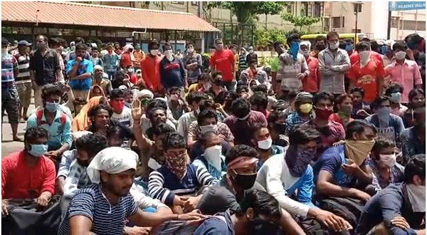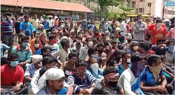 ಮಂಗಳೂರು: ಊರಿಗೆ ತೆರಳಲು ವ್ಯವಸ್ಥೆ ಕಲ್ಪಿಸಲು ಆಗ್ರಹಿಸಿ ವಲಸೆ ಕಾರ್ಮಿಕರ ಧರಣಿ
