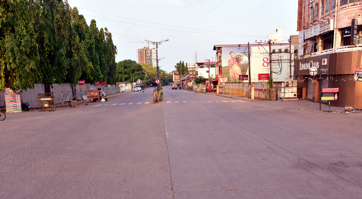 ಮಂಗಳೂರು, ಮೇ 24: ಕೊರೋನ ಸೋಂಕು ವ್ಯಾಪಕದ ನಡುವೆಯೂ ಲಾಕ್ಡೌನ್ ಸಡಿಲಿಕೆಯಿಂದಾಗಿ ಕಳೆದ ಕೆಲವು ದಿನಗಳಿಂದ ನಿನ್ನೆ ಸಂಜೆಯವರೆಗೂ ಜನಸಂಚಾರ, ವಾಹನ ವಾಹನಗಳ ಸಂಚಾರದಿಂದ ತುಂಬಿದ್ದ ರಸ್ತೆಗಳು ಇಂದು ಬಿಕೋ ಎನ್ನುತ್ತಿವೆ. ನಗರಾದ್ಯಂತ ಬಂದ್ನ ವಾತಾರವಣವಿದ್ದು, ಆಯಾಕಟ್ಟಿನ ಸ್ಥಳಗಳಲ್ಲಿ ಪೊಲೀಸರು ಮತ್ತೆ ಸರ್ಪಗಾವಲು ಹಾಕಿದ್ದಾರೆ.