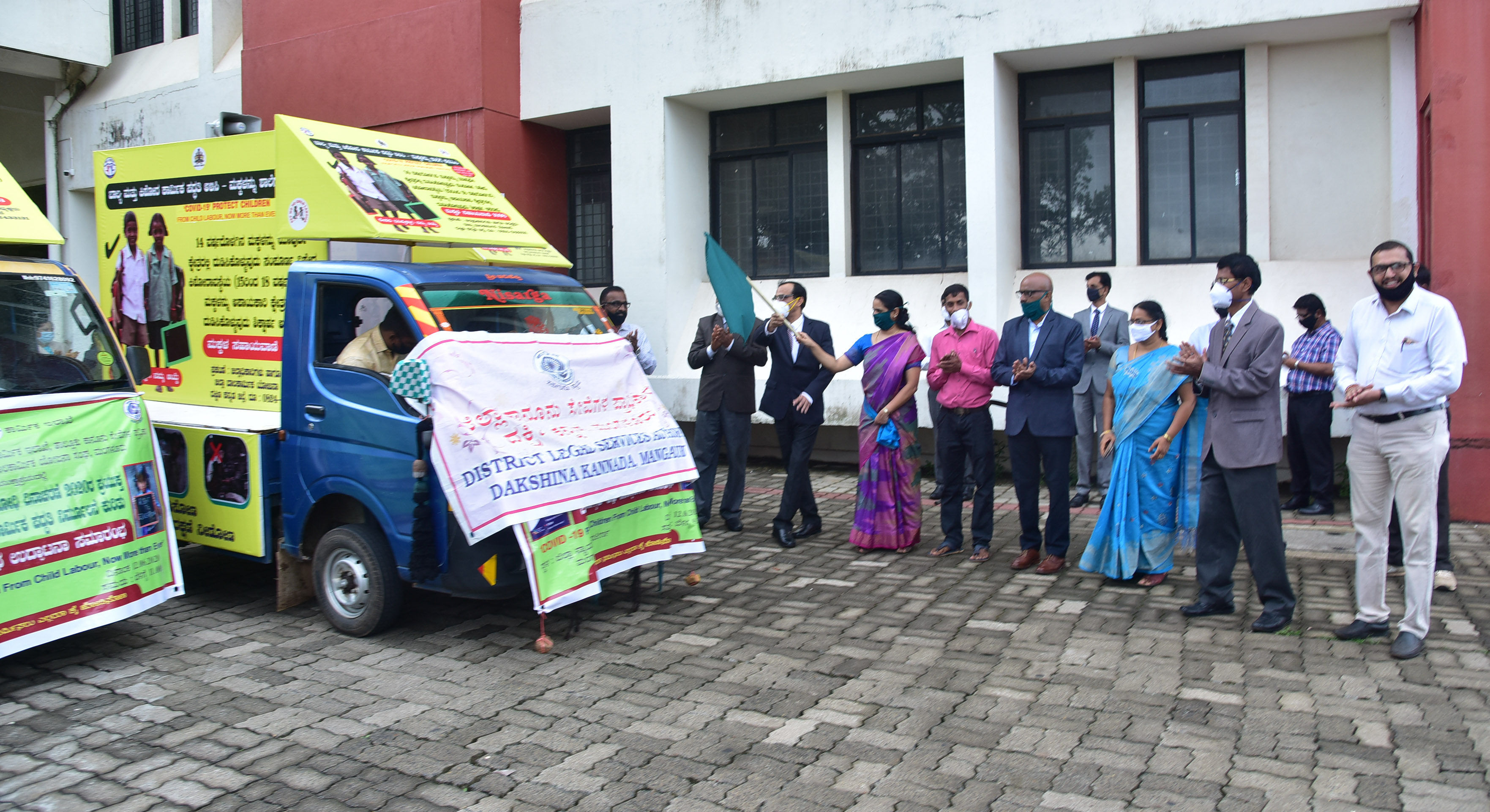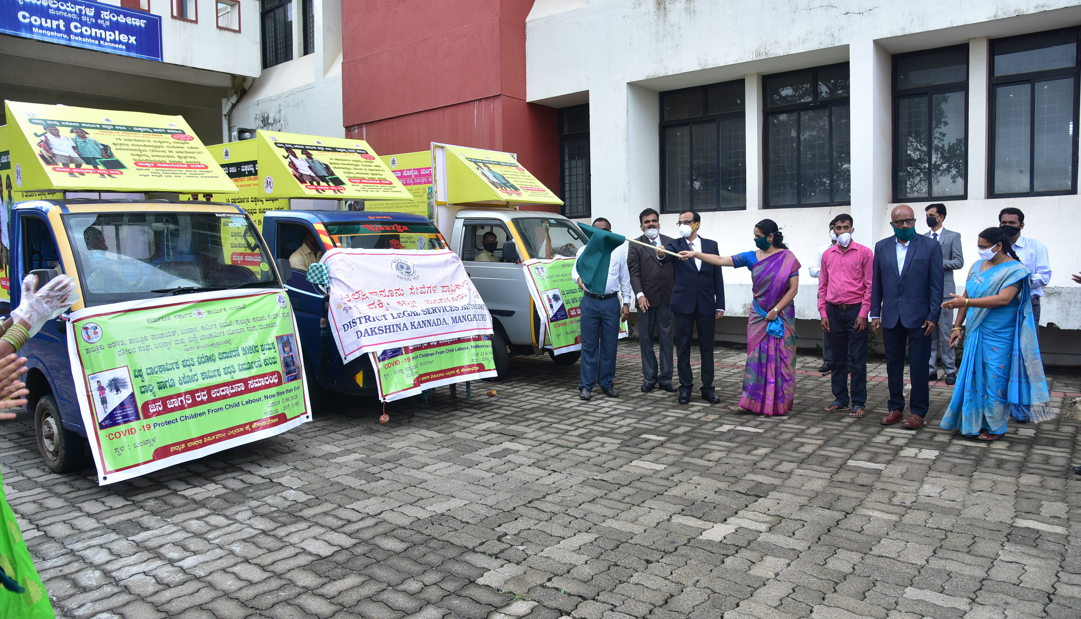 ಮಂಗಳೂರು: ನಗರದ ಜಿಲ್ಲಾ ನ್ಯಾಯಾಲಯ ಸಂಕೀರ್ಣದಲ್ಲಿ ಬಾಲ ಕಾರ್ಮಿಕ ಪದ್ಧತಿ ವಿರುದ್ಧ ಜಿಲ್ಲೆಯಾದ್ಯಂತ ನಡೆಯಲಿರುವ ಜನಜಾಗೃತಿ ಅಂಗವಾಗಿ ವಾಹನ ಜಾಥಾಕ್ಕೆ ನ್ಯಾಯಾಲಯ ಸಂಕೀರ್ಣದಲ್ಲಿ ನಡೆದ ಕಾರ್ಯಕ್ರಮದಲ್ಲಿ ದಕ್ಷಿಣ ಕನ್ನಡ ಜಿಲ್ಲಾಧಿಕಾರಿ ಸಿಂಧೂ ಬಿ. ರೂಪೇಶ್ ಚಾಲನೆ ನೀಡಿದರು.