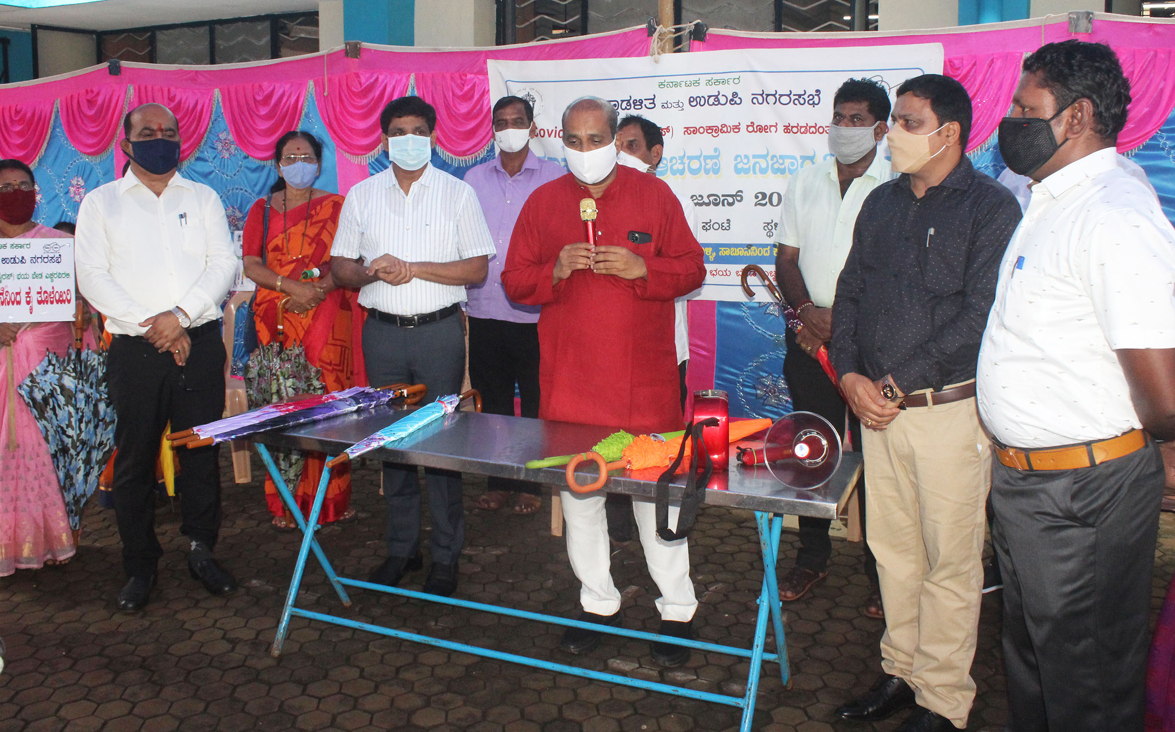 ಉಡುಪಿ ಜಿಲ್ಲಾಡಳಿತ ಮತ್ತು ನಗರಸಭೆ ವತಿಯಿಂದ ಮಾಸ್ಕ್ ದಿನಾಚರಣೆ ಪ್ರಯುಕ್ತ ಕೋವಿಡ್-19 ಹರಡದಂತೆ ಜಗಜಾಗೃತಿ ಮೂಡಿಸಲು ಗುರುವಾರ ನಗರದಲ್ಲಿ ಆಯೋಜಿಸಲಾದ ಪಾದಯಾತ್ರೆ ಕಾರ್ಯಕ್ರಮದಲ್ಲಿ ಭಾಗವಹಿಸಿ ಅವರು ಮಾತನಾಡುತಿದ್ದರು.
