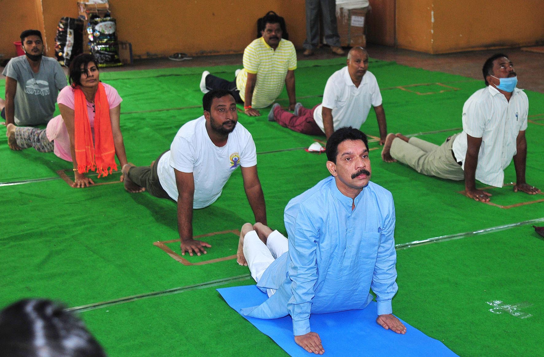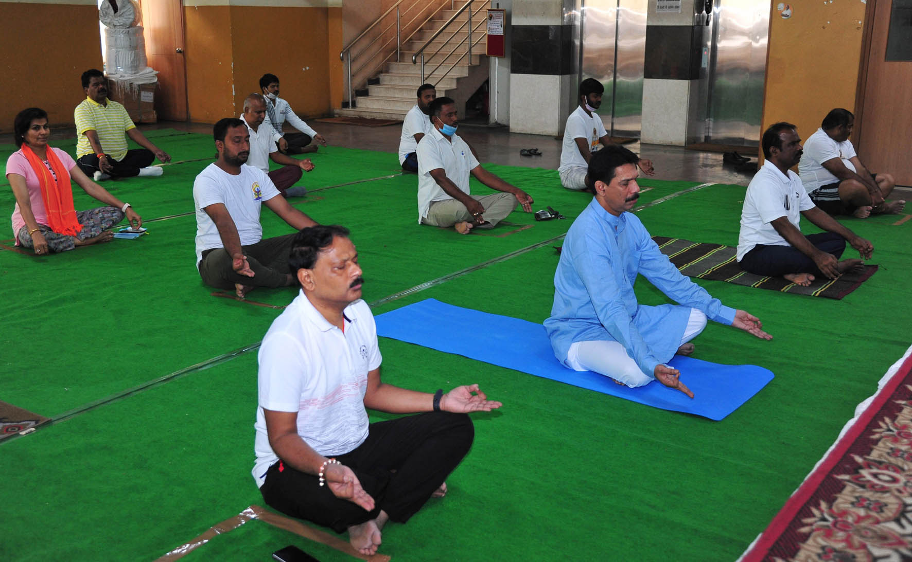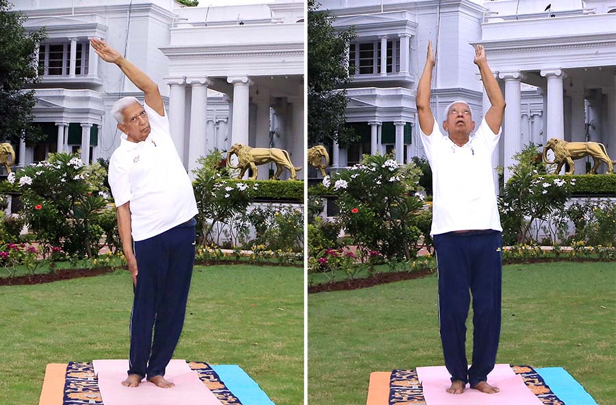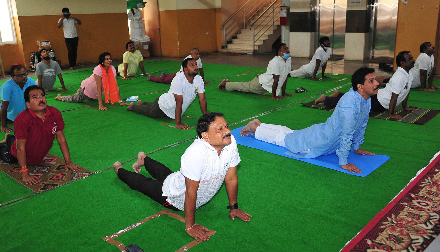 ರಾಜ್ಯಪಾಲ ವಜುಭಾಯಿ ವಾಲಾ ಅವರು ರಾಜಭವನದಲ್ಲಿ ಯೋಗಾಸನ ಮಾಡಿದರು