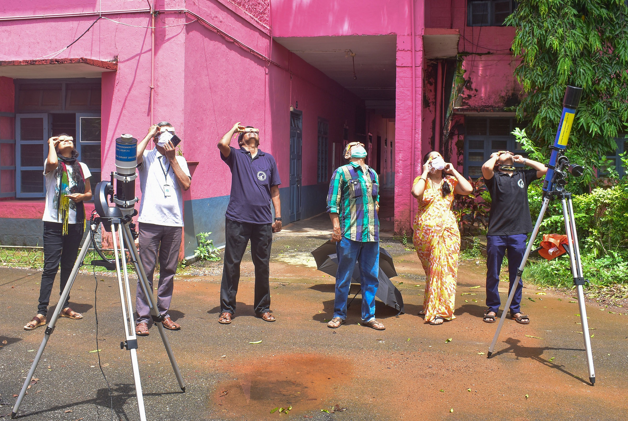 ನೇರ ಪ್ರಸಾರದ ವ್ಯವಸ್ಥೆ: ಉಡುಪಿ ಪೂರ್ಣಪ್ರಜ್ಞ ಕಾಲೇಜಿನ ಆವರಣದಲ್ಲಿ ಪೂರ್ಣಪ್ರಜ್ಞ ಹವ್ಯಾಸಿ ಖಗೋಳ ವೀಕ್ಷಕರ ಸಂಘದಿಂದ ಸೂರ್ಯ ಗ್ರಹಣವನ್ನು ಟೆಲಿಸ್ಕೋಪ್ ಫಿಲ್ಟರ್, ಕನ್ನಡಕ ಮತ್ತು ವೆಲ್ಡಿಂಗ್ ಗ್ಲಾಸ್ ಮೂಲಕ ವೀಕ್ಷಿಸಲಾಯಿತು.