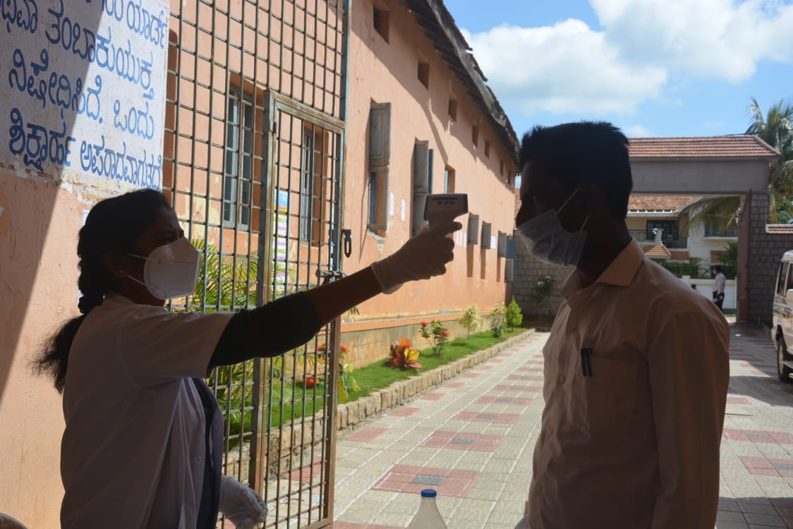 ಥರ್ಮಲ್ ಸ್ಕ್ಯಾನಿಂಗ್, ಸ್ಯಾನಿಟೈಸರ್ ಬಳಸಿ ಮಾಸ್ಕ್ ಧರಿಸಿ ಬಂದ ವಿದ್ಯಾರ್ಥಿಗಳನ್ನು ಮುಂಚಿತವಾಗಿಯೇ ಸುರಕ್ಷಿತ ಅಂತರ ಕಾಯ್ದುಕೊಳ್ಳುವ ಉದ್ದೇಶದಿಂದ ಒಂದು ಮೀಟರ್ ಅಂತರದಲ್ಲಿ ಹಾಕಲಾಗಿದ್ದ ಡೆಸ್ಕ್ ಗಳಲ್ಲಿ ವಿದ್ಯಾರ್ಥಿಗಳು ಆಸೀನರಾಗಲು ಕೊಠಡಿ ಮೇಲ್ವಿಚಾರಕರು ಅನುವು ಮಾಡಿಕೊಟ್ಟರು. ಬೆಳಗ್ಗೆ 10:30ಕ್ಕೆ ಮಧ್ಯಾಹ್ನ 1:30ರ ವರೆಗೂ ವಿದ್ಯಾರ್ಥಿಗಳು ಯಾವುದೇ ಆತಂಕವಿಲ್ಲದೇ ಪರೀಕ್ಷೆ ಬರೆದರು.