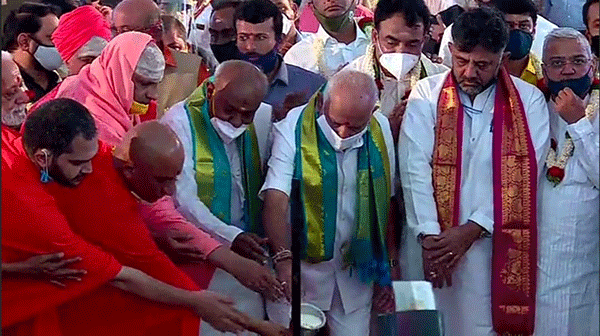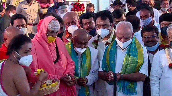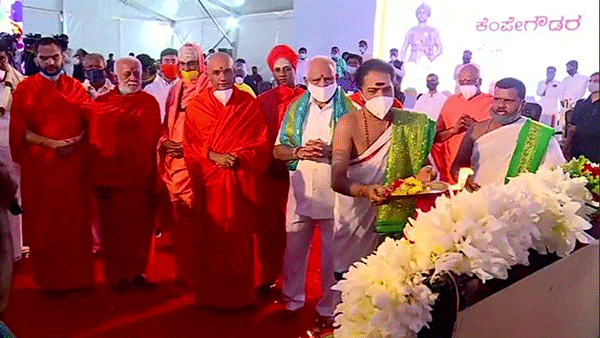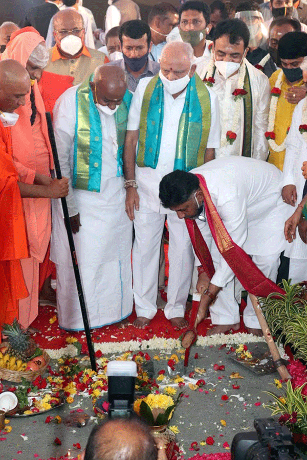 ಬೆಂಗಳೂರು: ವಿಮಾನ ನಿಲ್ದಾಣದಲ್ಲಿ ಕೆಂಪೇಗೌಡರ ಕಂಚಿನ ಪ್ರತಿಮೆ ನಿರ್ಮಾಣಕ್ಕೆ ಶಿಲಾನ್ಯಾಸ