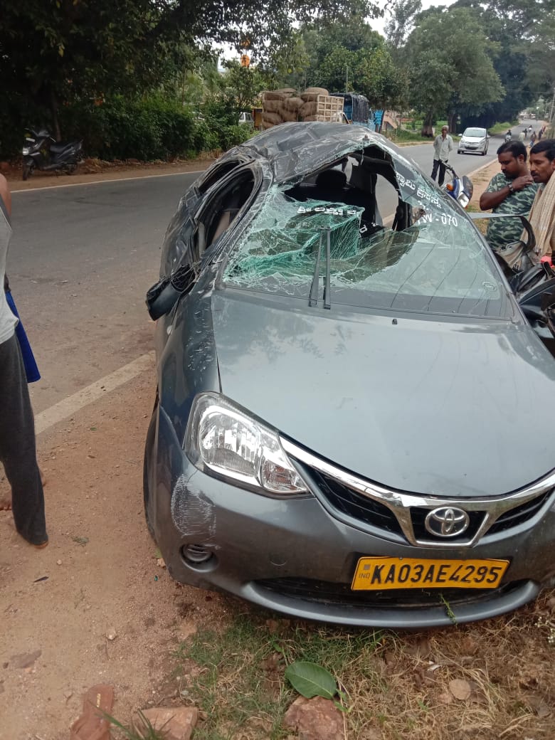 ಕಂಬಕ್ಕೆ ಢಿಕ್ಕಿ ಹೊಡೆದು ಕಾರು ಪಲ್ಟಿ: ಬೆಂಗಳೂರು ಮೂಲದ ಇಬ್ಬರು ಮೃತ್ಯು