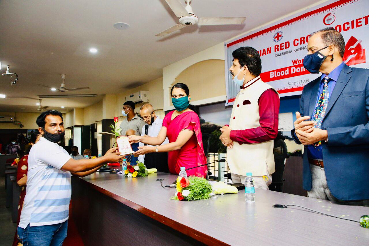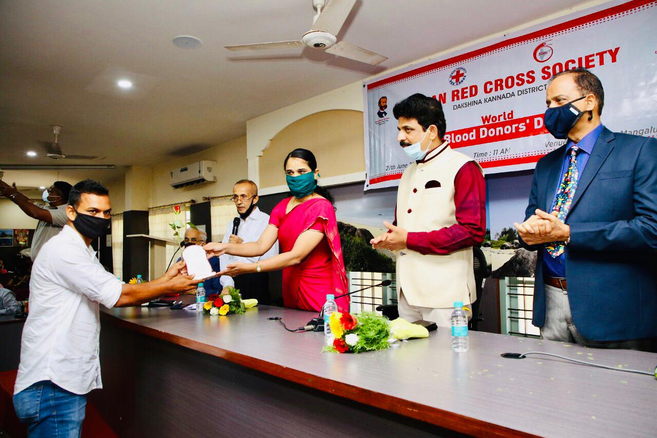 ಮಂಗಳೂರು, ಜೂ.27: ಇಂಡಿಯನ್ ರೆಡ್ ಕ್ರಾಸ್ ದಕ್ಷಿಣ ಕನ್ನಡ ಜಿಲ್ಲೆಯ ಸಾರಥ್ಯದಲ್ಲಿ ವಿಶ್ವ ರಕ್ತದಾನಿಗಳ ದಿನದ ಪ್ರಯುಕ್ತ ರಕ್ತದಾನದ ಜಾಗೃತಿ ಹಾಗೂ ಸಾಧಕರಿಗೆ ಸನ್ಮಾನ ಕಾರ್ಯಕ್ರಮವು ಮಂಗಳೂರಿನ ಜಿಲ್ಲಾಧಿಕಾರಿಗಳ ಕಚೇರಿಯ ಸಭಾಂಗಣದಲ್ಲಿ ನಡೆಯಿತು.