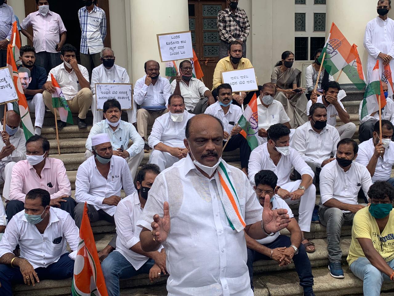 ಮಂಗಳೂರು : ಪೆಟ್ರೋಲ್, ಡೀಸೆಲ್ ಬೆಲೆ ಏರಿಕೆ ವಿರೋಧಿಸಿ ದ.ಕ. ಜಿಲ್ಲಾ ಕಾಂಗ್ರೆಸ್ ಸಮಿತಿಯಿಂದ ಪ್ರತಿಭಟನೆ