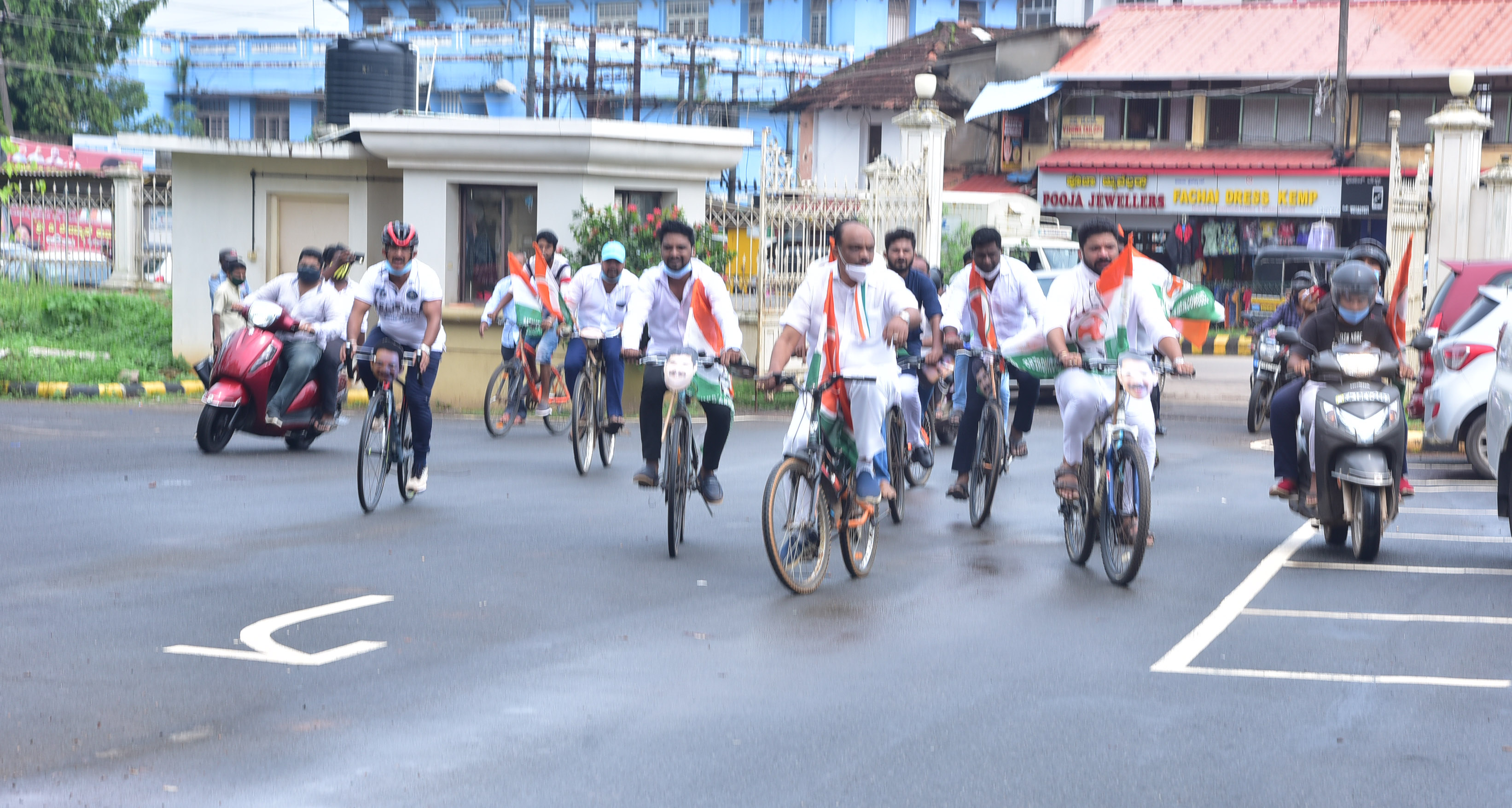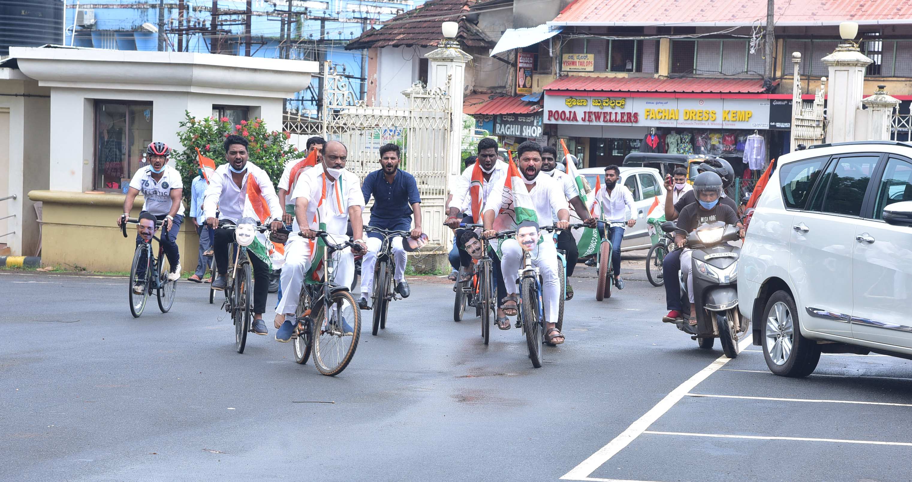 ಮಂಗಳೂರು: ಪೆಟ್ರೋಲ್, ಡೀಸೆಲ್ ದರ ಏರಿಕೆ ಖಂಡಿಸಿ ಕೇಂದ್ರ ಹಾಗೂ ರಾಜ್ಯ ಸರಕಾರಗಳ ವಿರುದ್ಧ ದ.ಕ. ಜಿಲ್ಲಾ ಕಾಂಗ್ರೆಸ್ ಸಮಿತಿ ಸೋಮವಾರ ನಗರದ ಅಂಬೇಡ್ಕರ್ ವೃತ್ತದಿಂದ ಕುದ್ಮುಲ್ ರಂಗರಾವ್ ಪುರಭವನದವರೆಗೆ ಸೈಕಲ್ ಚಳವಳಿ ನಡೆಸಿತು.