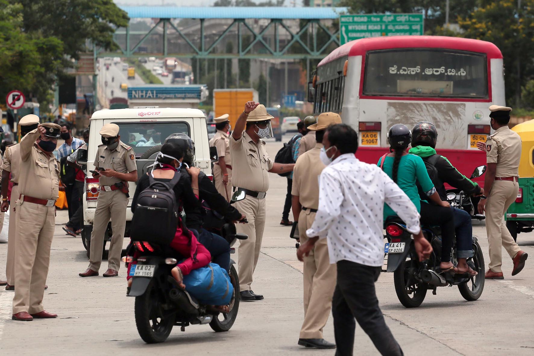 ಗಡಿ ಬಂದ್: ಬೆಂಗಳೂರು ನಗರ ಹಾಗೂ ಗ್ರಾಮಾಂತರ ಜಿಲ್ಲೆಗಳನ್ನು ಸಂಪರ್ಕಿಸುವ ಹೊಸೂರು ರಸ್ತೆ, ಹಳೆ ಮದ್ರಾಸ್ ರಸ್ತೆ, ಮೈಸೂರು ರಸ್ತೆ, ಕೋಲಾರ ರಸ್ತೆ ಹಾಗೂ ತುಮಕೂರು ರಸ್ತೆ ಸೇರಿದಂತೆ ಎಲ್ಲ ಗಡಿಗಳನ್ನು ಮುಚ್ಚಲಾಗಿದ್ದು, ಅಗತ್ಯ ಮತ್ತು ಅನಿವಾರ್ಯತೆಯನ್ನು ಹೊರತುಪಡಿಸಿ ಹೊರಗಿನಿಂದ ಒಳ ಬರುವ ಮತ್ತು ಇಲ್ಲಿಂದ ಹೊರ ಹೋಗುವ ಎಲ್ಲ ವಾಹನಗಳನ್ನು ತಾತ್ಕಾಲಿಕವಾಗಿ ನಿರ್ಬಂಧಿಸಲಾಗಿದೆ.