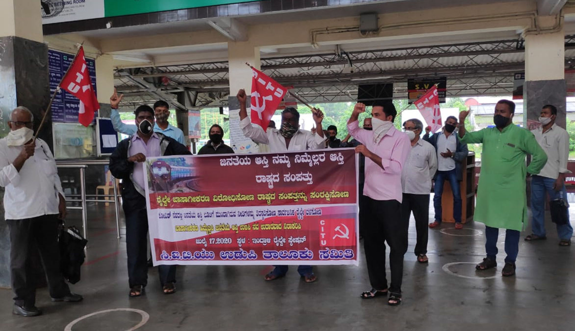 ಉಡುಪಿ: ರೈಲ್ವೆ ಖಾಸಗೀಕರಣವನ್ನು ವಿರೋಧಿಸಿ ಪ್ರತಿಭಟನೆ