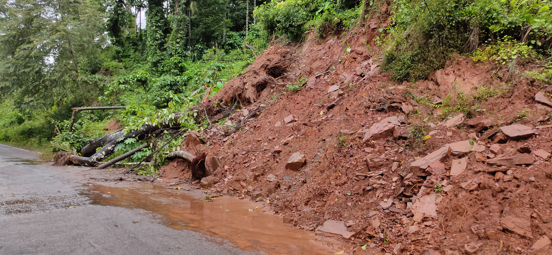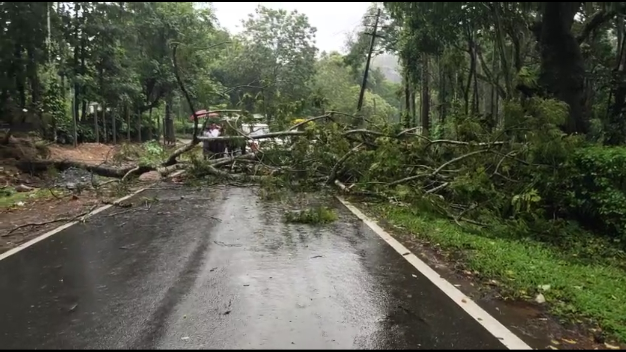 ಶುಕ್ರವಾರ ಮೂಡಿಗೆರೆ ತಾಲೂಕಿನಾದ್ಯಂತ ಧಾರಾಕಾರ ಮಳೆಯಾಗಿದ್ದು, ತಾಲೂಕಿನ ಭೂತನಕಾಡು ಗ್ರಾಮ ಸಮೀಪದಲ್ಲಿ ಭಾರೀ ಮಳೆ ಗಾಳಿಗೆ ಬೃಹತ್ ಗಾತ್ರದ ಮರವೊಂದು ಹೆದ್ದಾರಿಗೆ ಉರುಳಿ ಬಿದ್ದಿದೆ. ಮೂಡಿಗೆರೆ ಹಾಗೂ ಚಿಕ್ಕಮಗಳೂರು ಸಂಪರ್ಕದ ಹೆದ್ದಾರಿಗೆ ಮರ ಉರುಳಿದ್ದ ಪರಿಣಾಮ ಸುಮಾರು 1 ಗಂಟೆಗಳ ಕಾಲ ಎರಡು ಬದಿಗಳಲ್ಲೂ ವಾಹನ ಸಂಚಾರ ಸ್ತಬ್ಧಗೊಂಡಿತ್ತು. ಸ್ಥಳೀಯರು ಮರ ತೆರವು ಮಾಡಿದ ಬಳಿಕ ವಾಹನ ಸಂಚಾರ ಆರಂಭವಾಯಿತು.